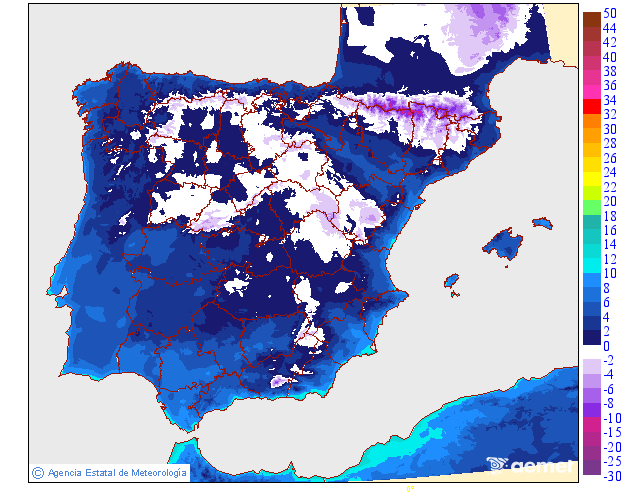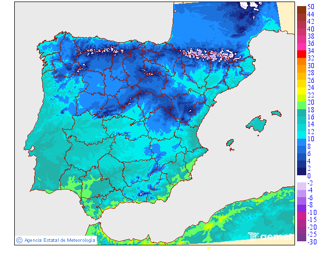 En moderado descenso. Heladas débiles o moderadas, persistentes y localmente fuertes en cotas altas.