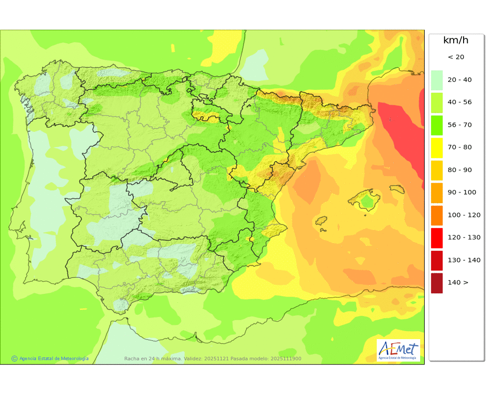 Fuerte del norte y noroeste, con rachas muy fuertes en cotas altas y zonas expuestas la segunda mitad del día.