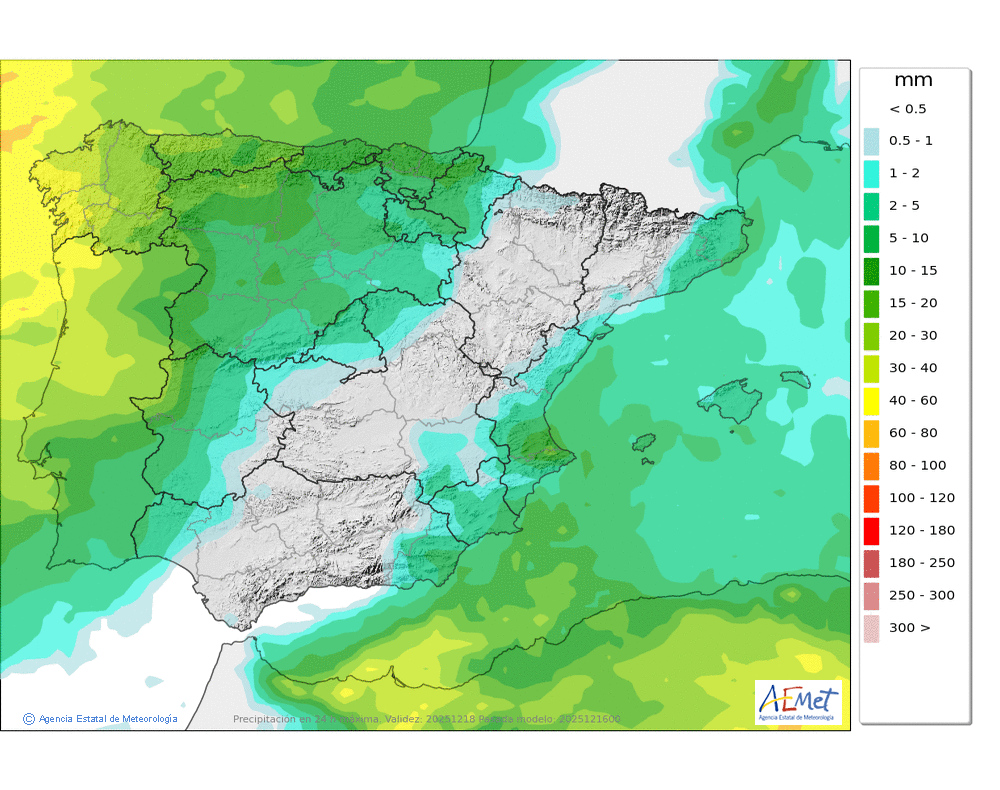 Mínimas en ligero descenso, salvo algunos ligeros ascensos en el norte. Máximas generalmente en ligero descenso, salvo algunos ligeros ascensos en el norte y en el área oriental. Heladas débiles, moderadas en cotas altas.