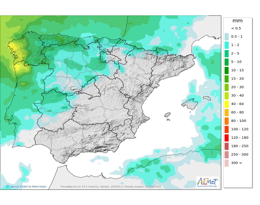 precipitaciones débiles en el Arán y resto de la divisoria a