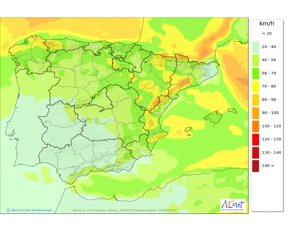 Viento en la atmósfera libre a 3000 m: NW 100 km/h