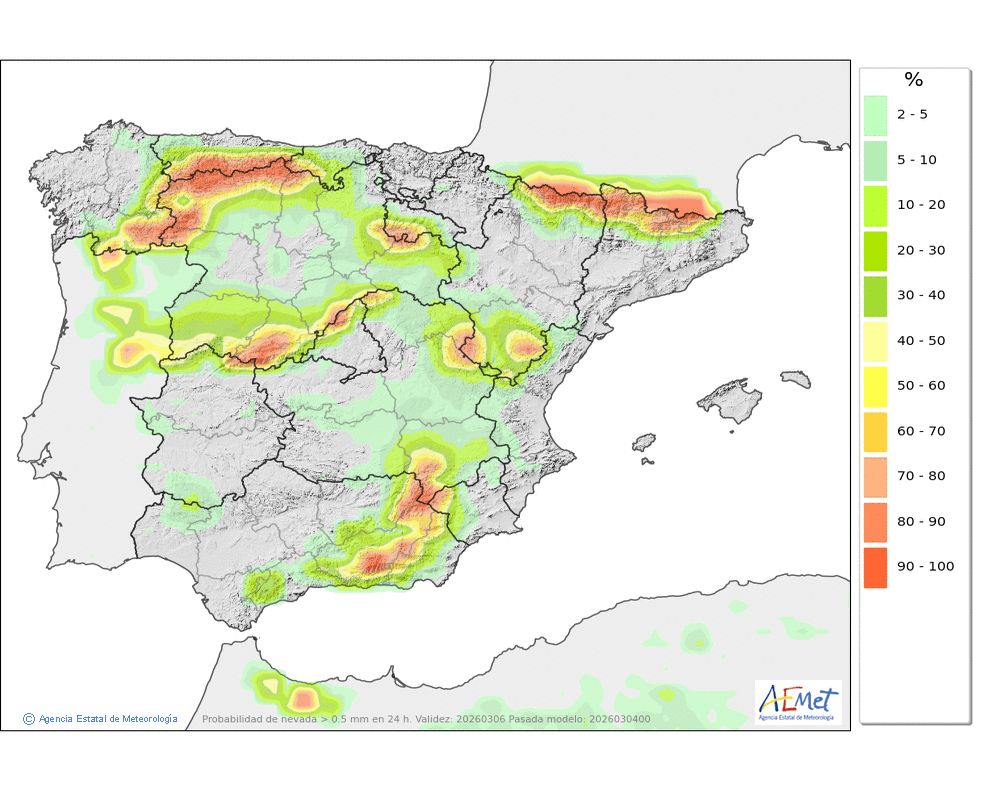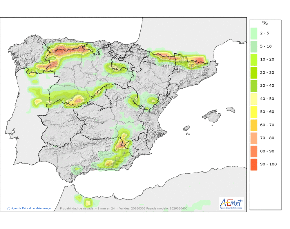 Cota de nieve: 1900-2100 metros.