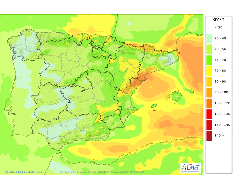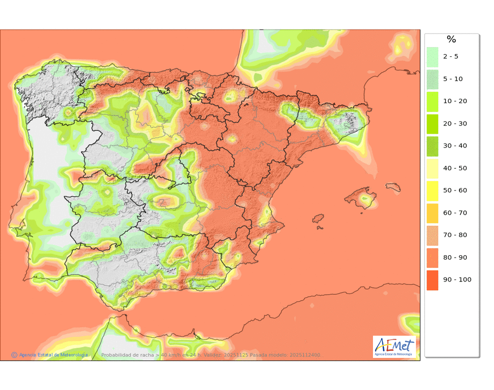 Fuerte del noroeste girando a norte, con probables rachas muy fuertes en cotas altas y zonas expuestas.