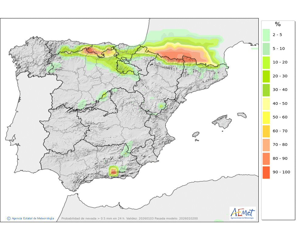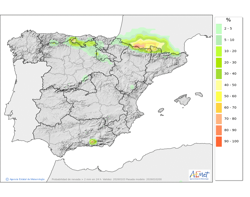 Cota de nieve en torno a 1800-2000 metros, pudiendo