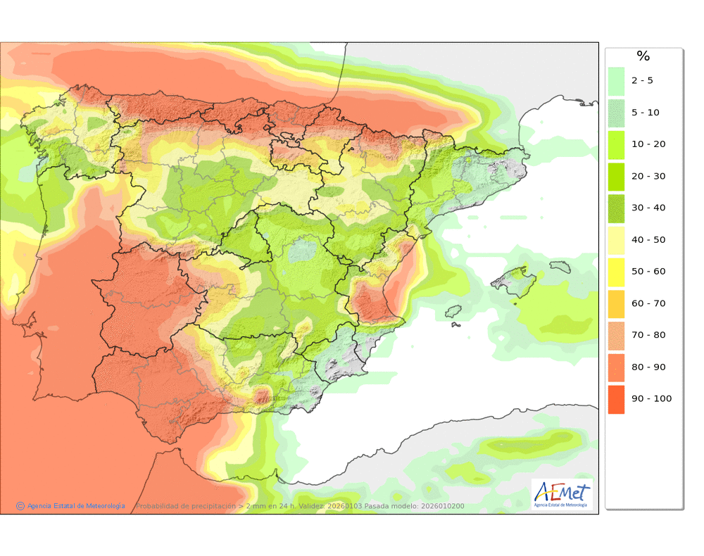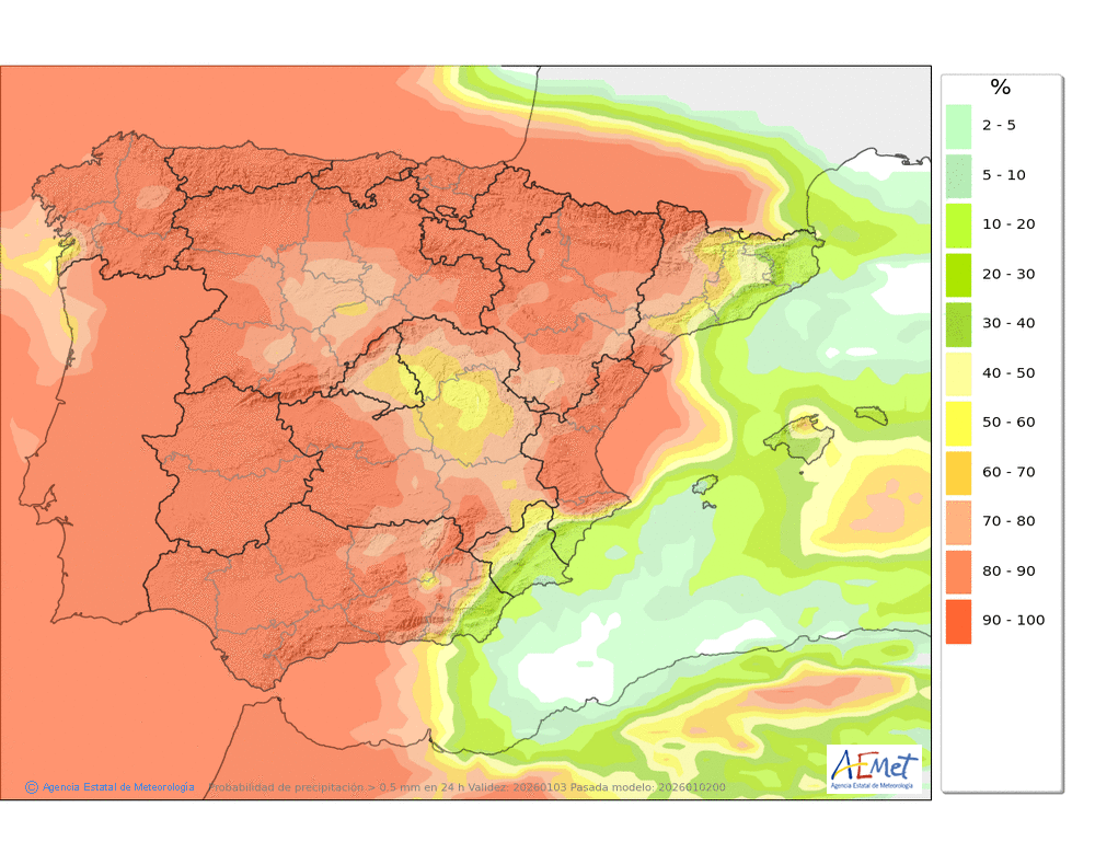 Precipitaciones débiles y frecuentes, sobre todo en la divisoria