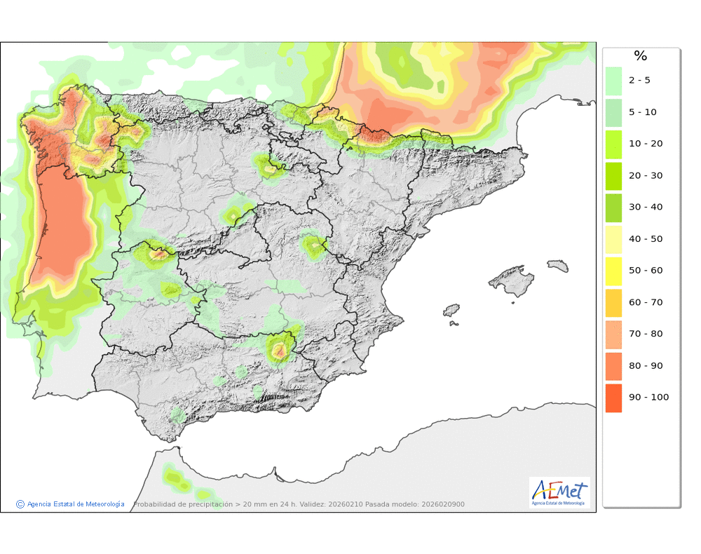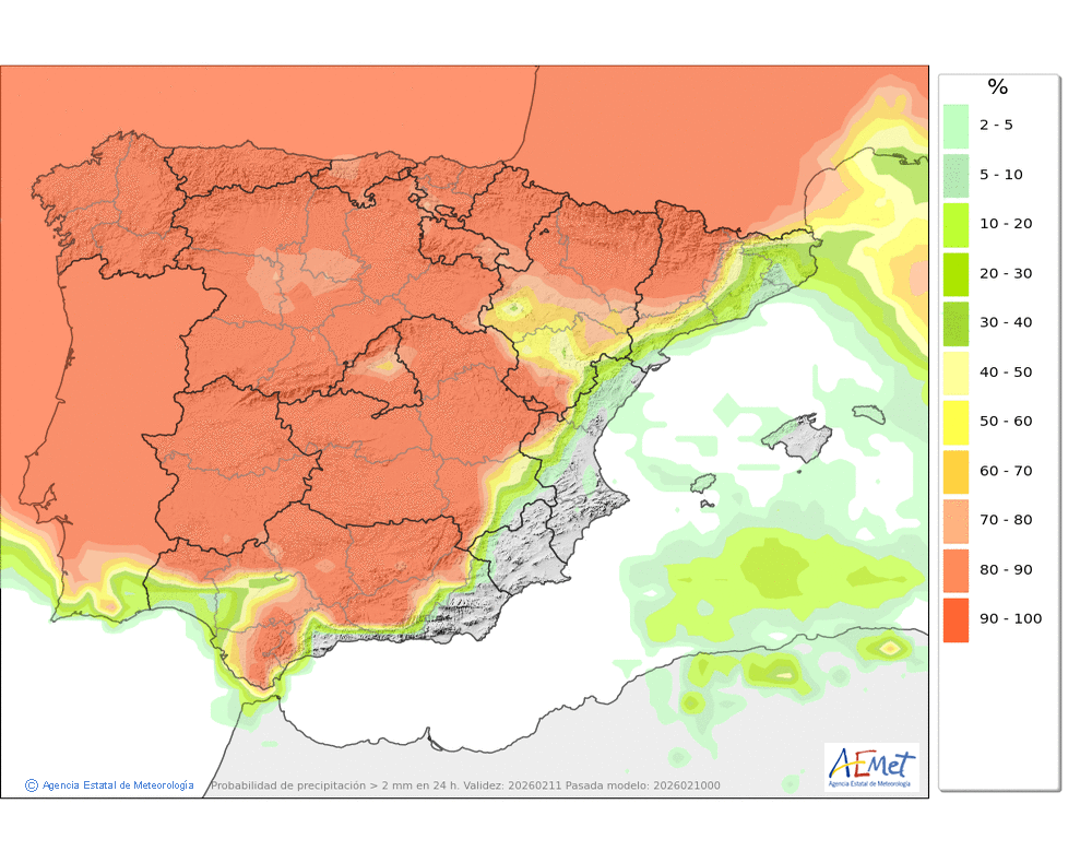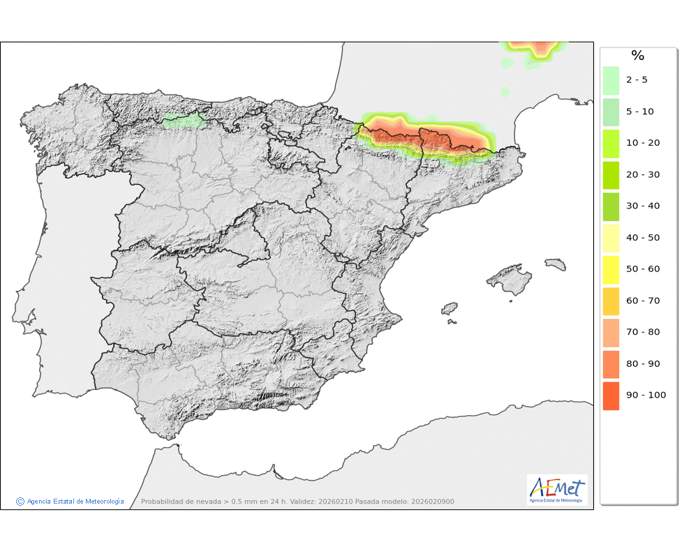 por nieve húmeda, mientras que en cotas altas se acentuarán los