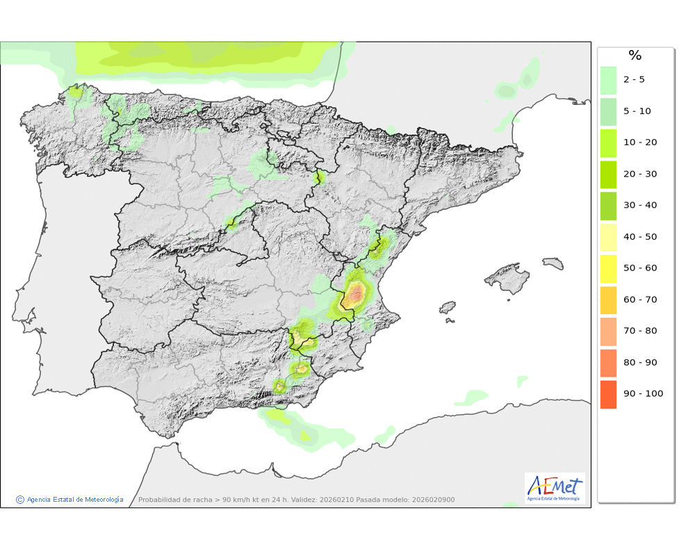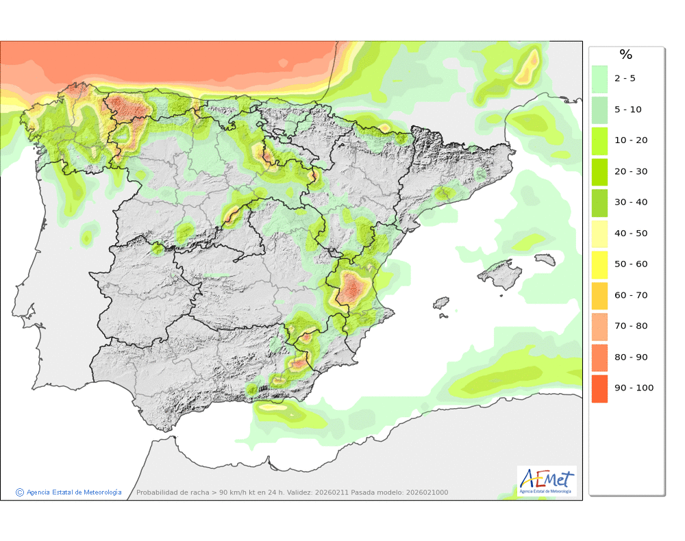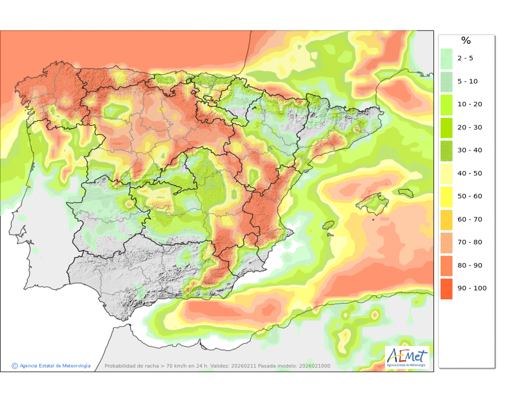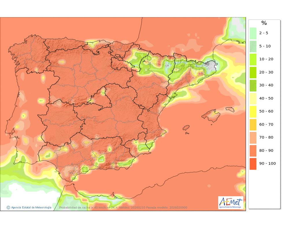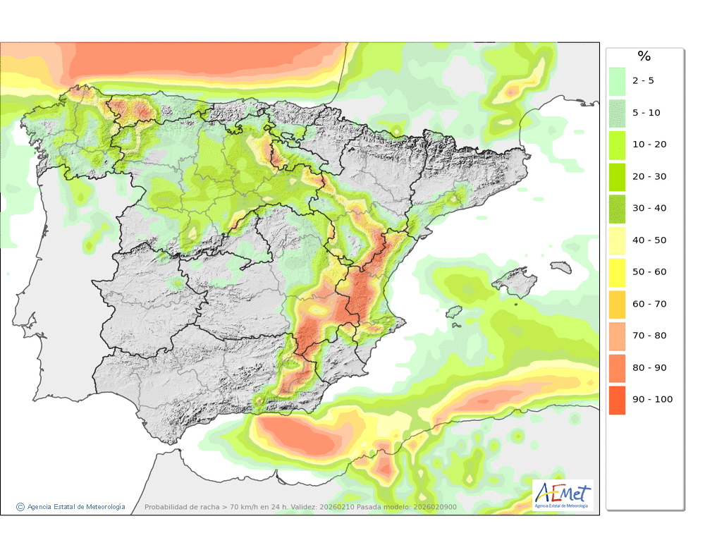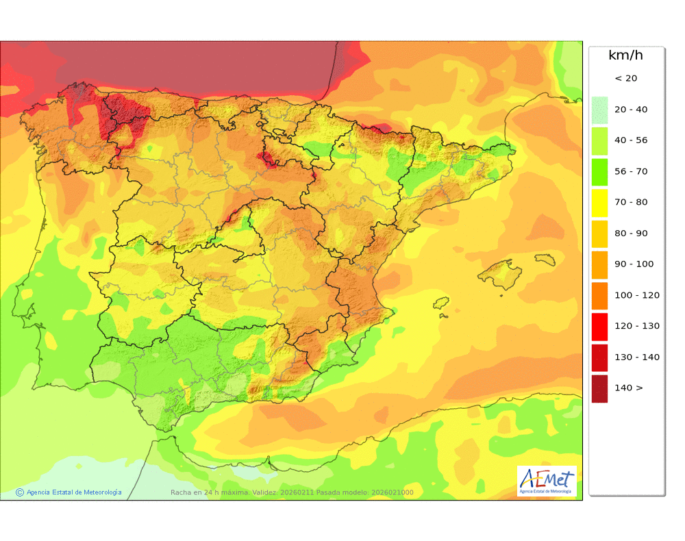rachas muy fuertes en cotas altas y zonas expuestas a últimas