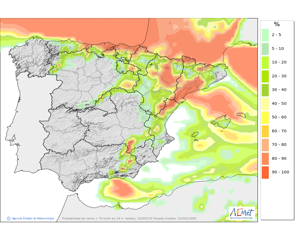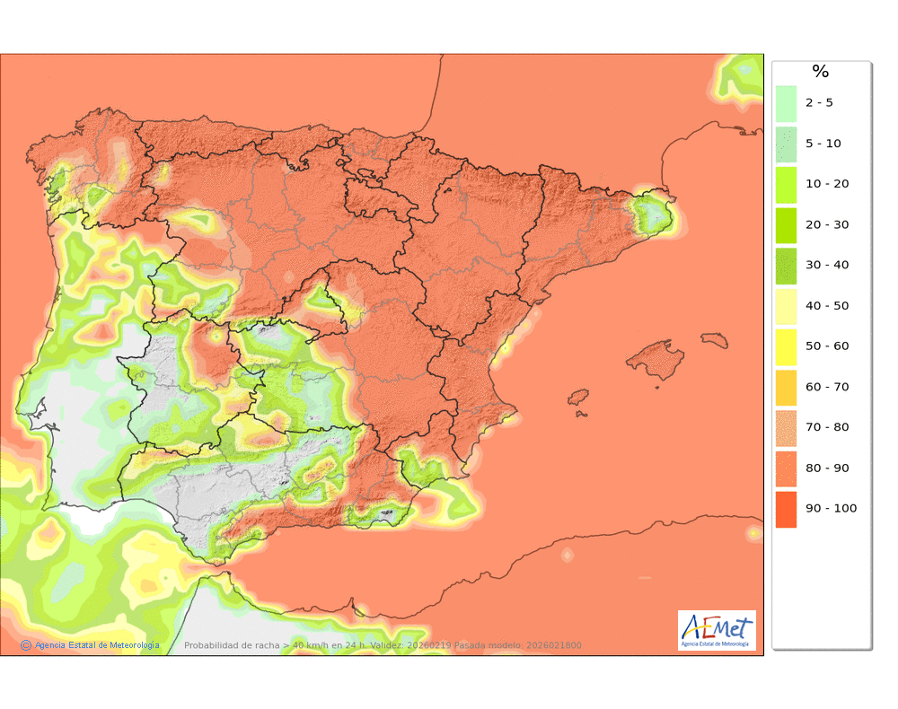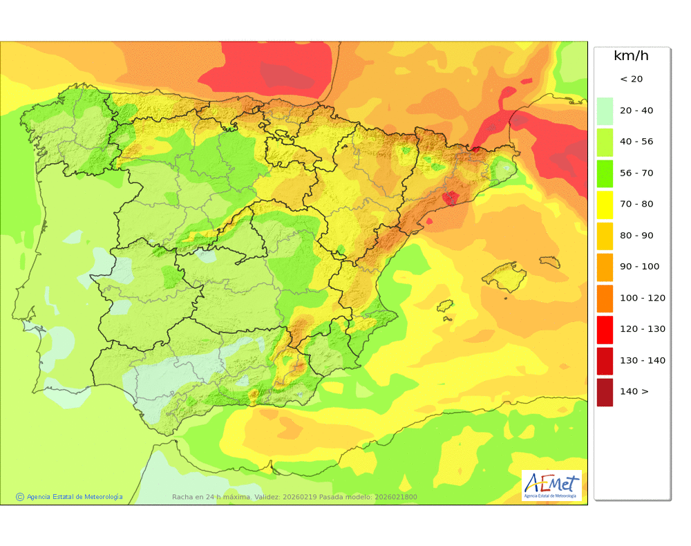 Fuerte del oeste y noroeste, con rachas muy fuertes en cotas altas y zonas expuestas.