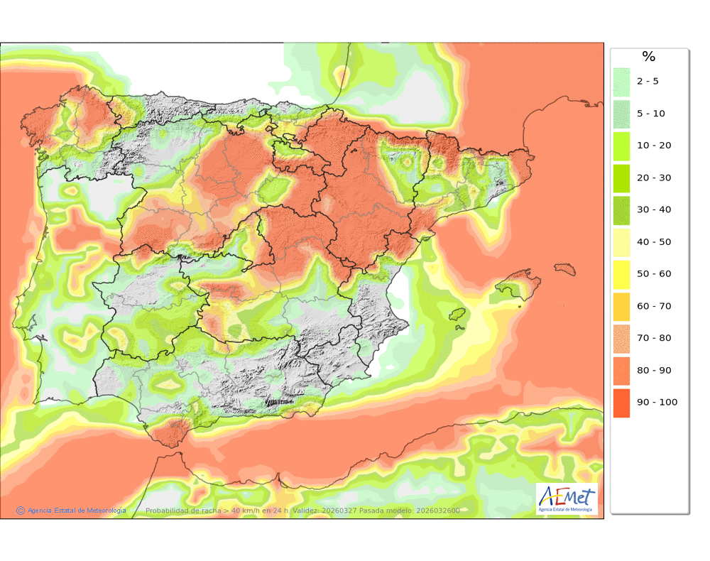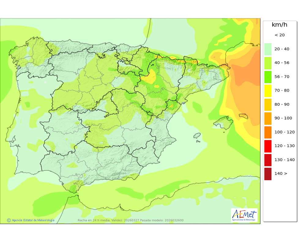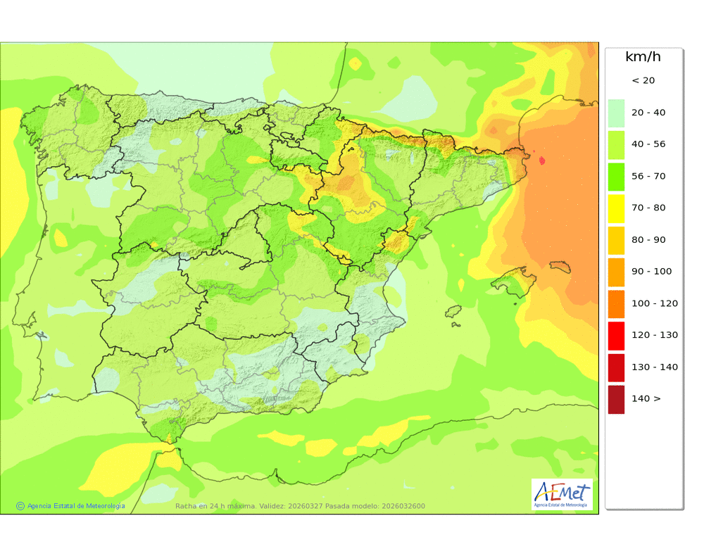 Fuete del norte y nordeste, con rachas muy fuerte en cotas altas y zonas expuestas, donde tenderá a aflojar a últimas horas.