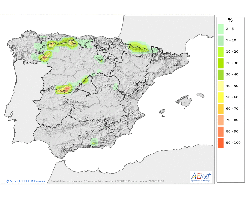 continuarán las nevadas desde cotas bajas, por lo que se esperan