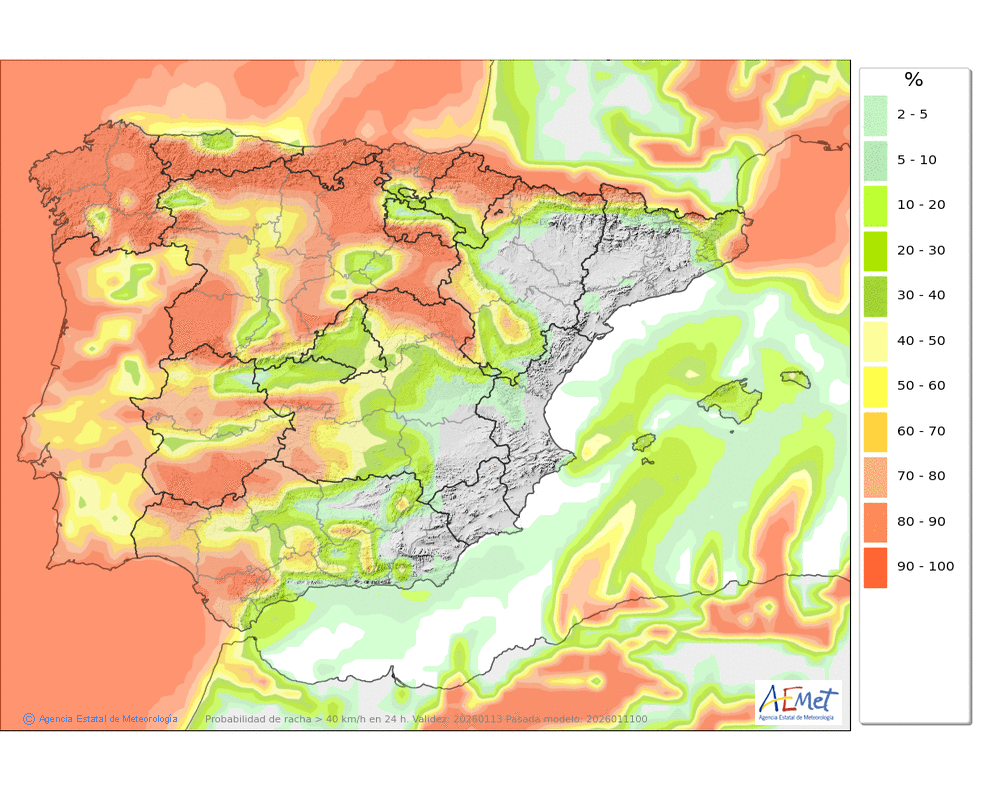 Viento en la atmósfera libre a 3000 m: NW 40 km/h