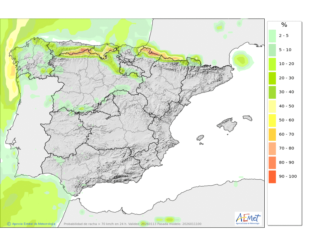 Asimismo, habrá numerosas y gruesas placas de viento en cotas