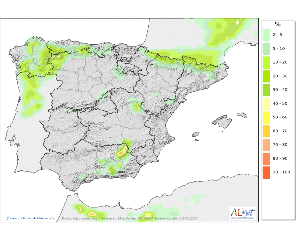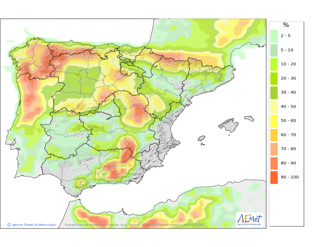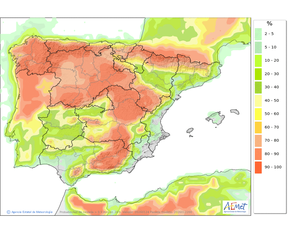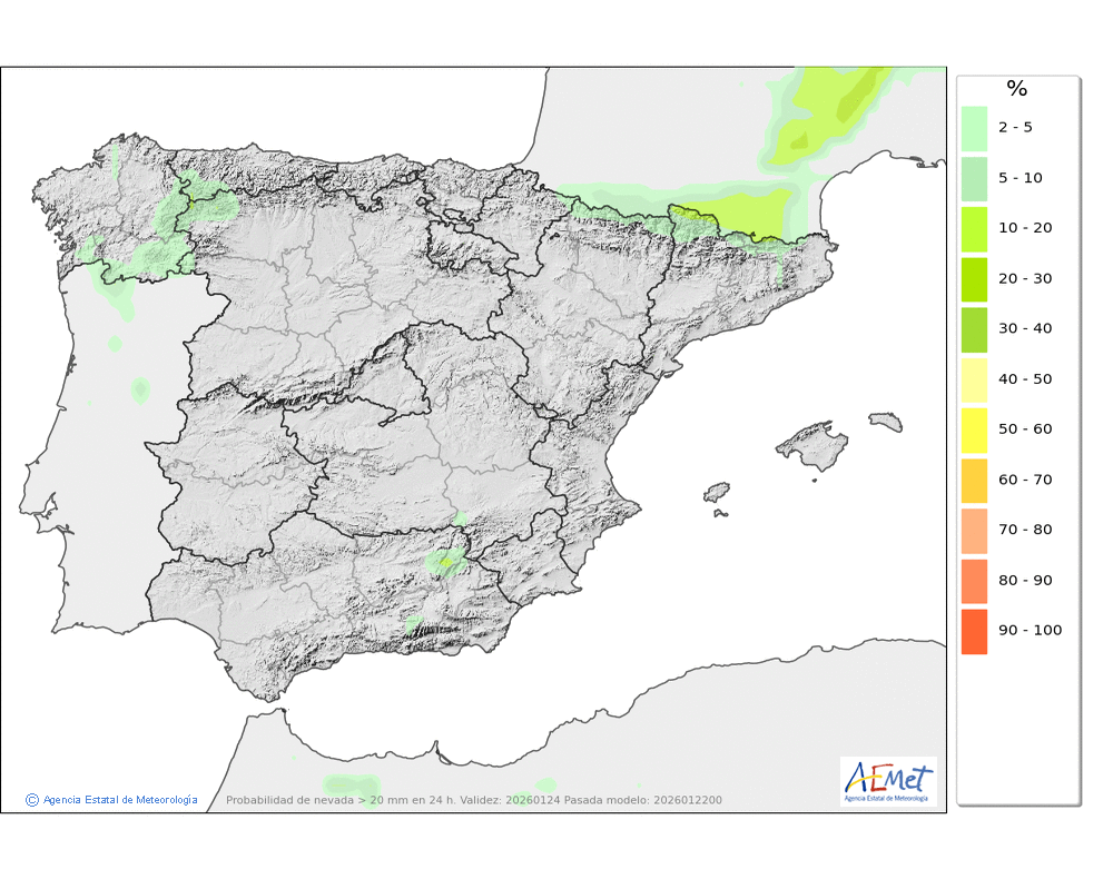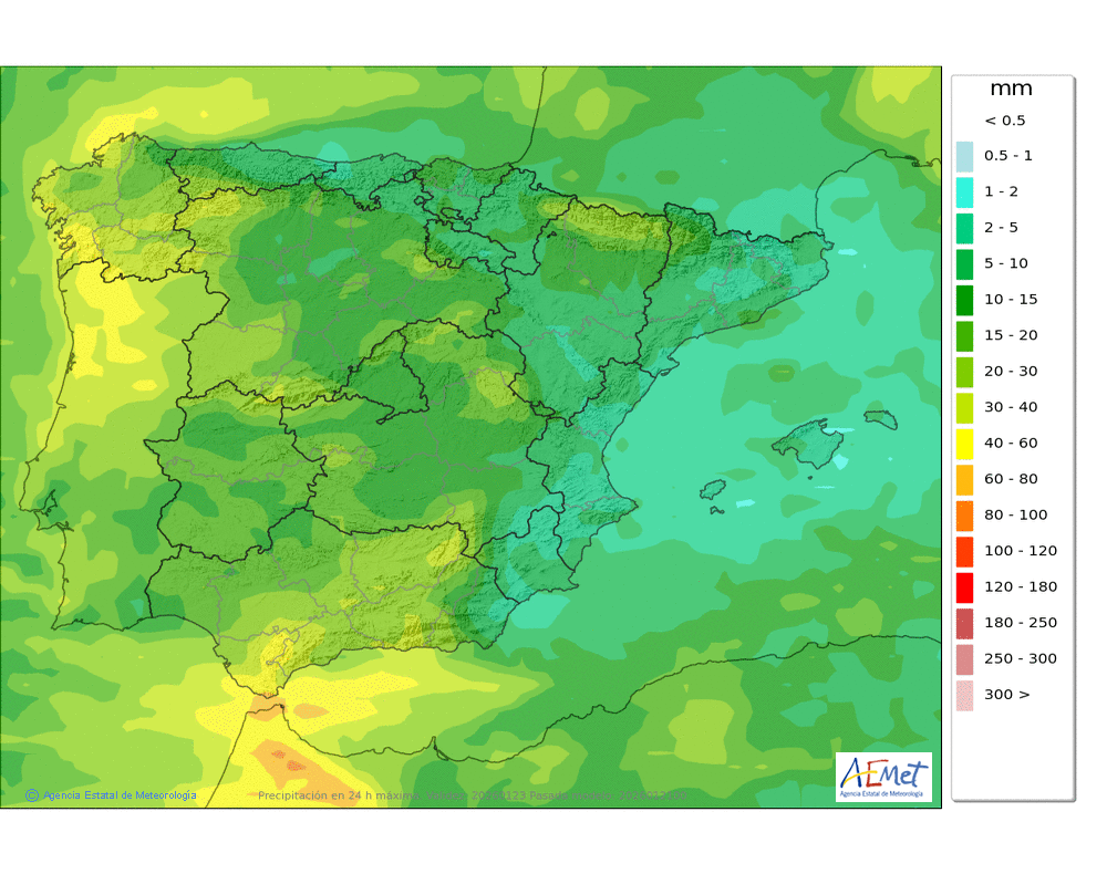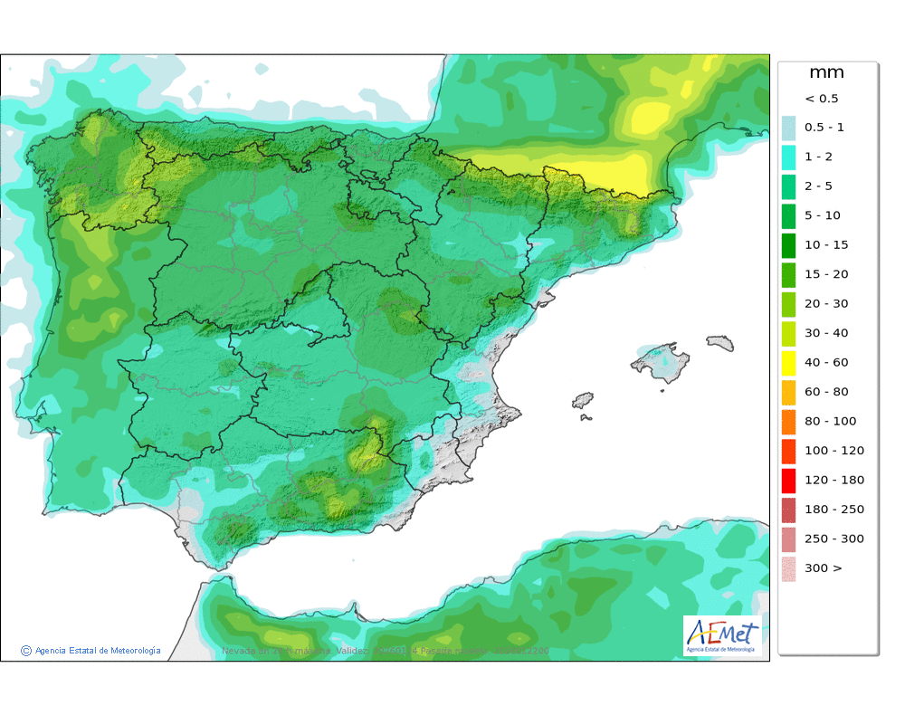 los 5 l/m2, en forma de nieve por encima de unos 1400 metros.