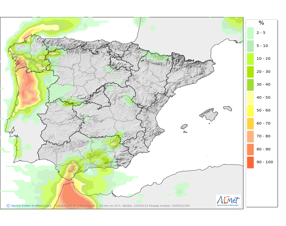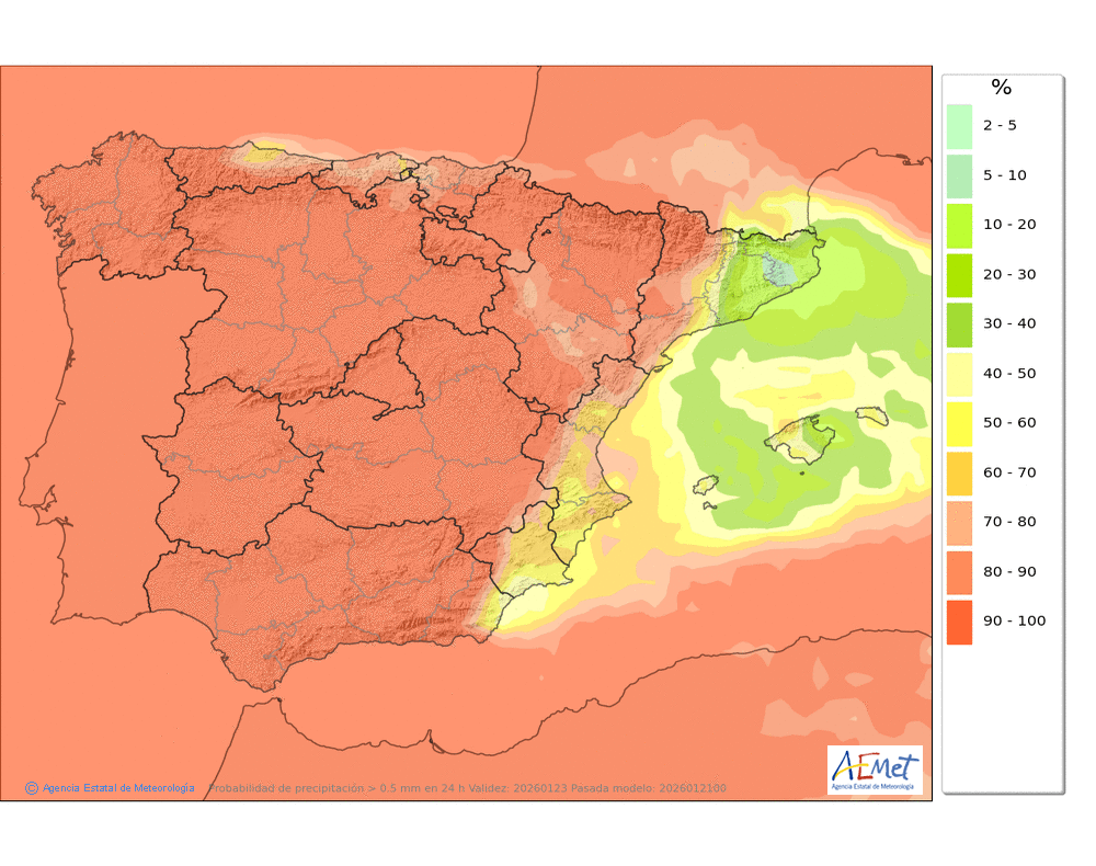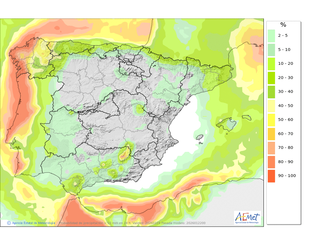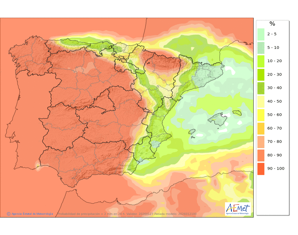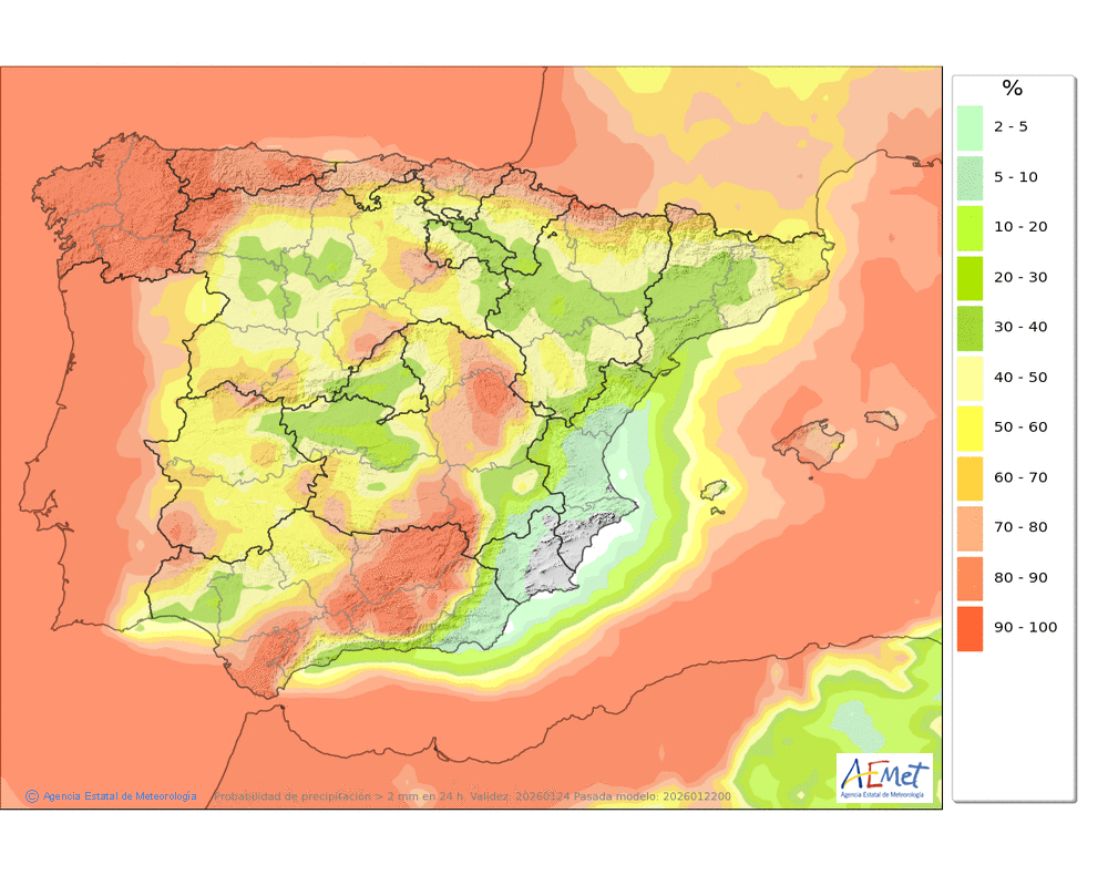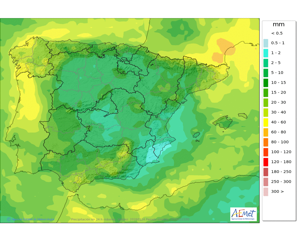 los 5 l/m2, en forma de nieve por encima de unos 1400 metros.