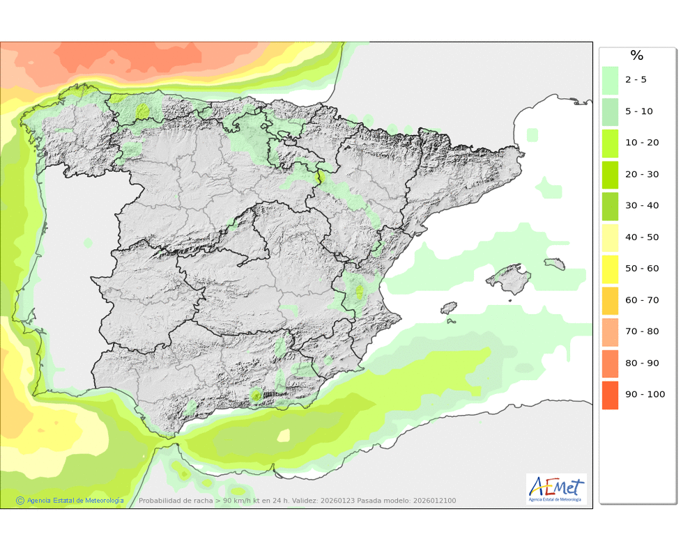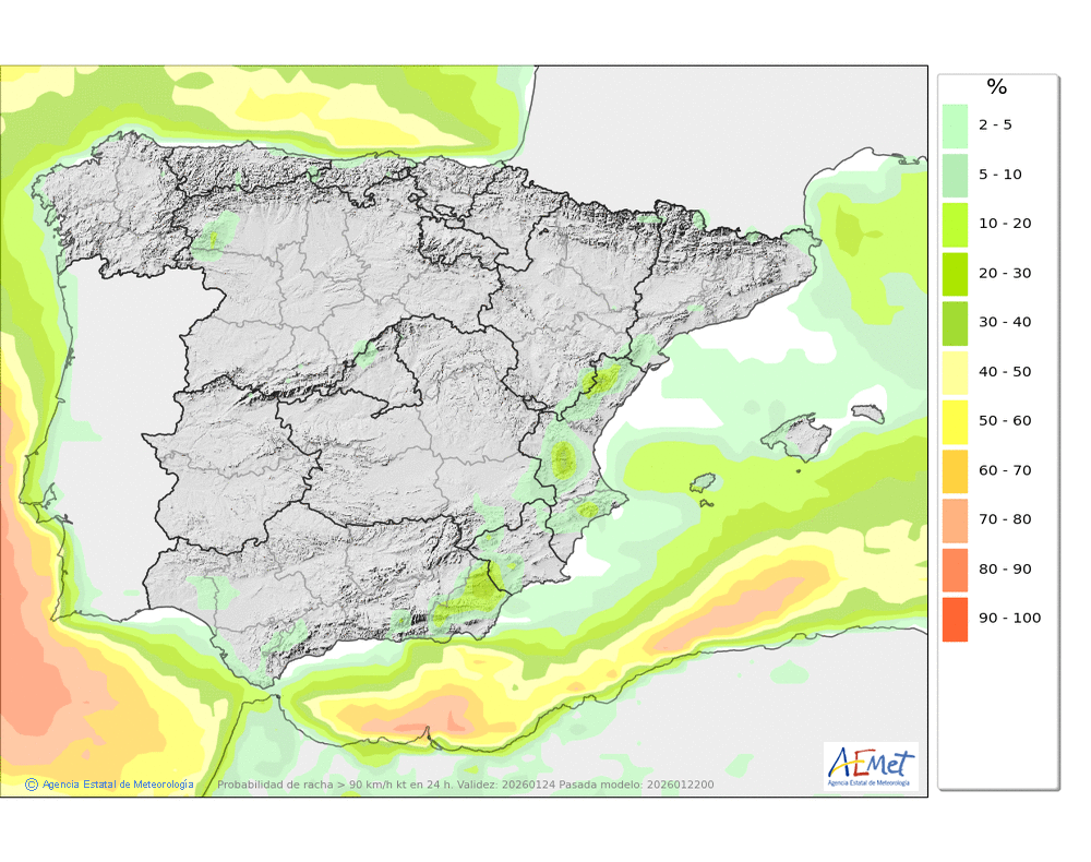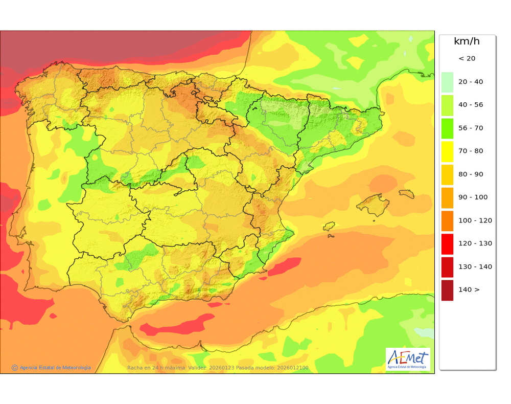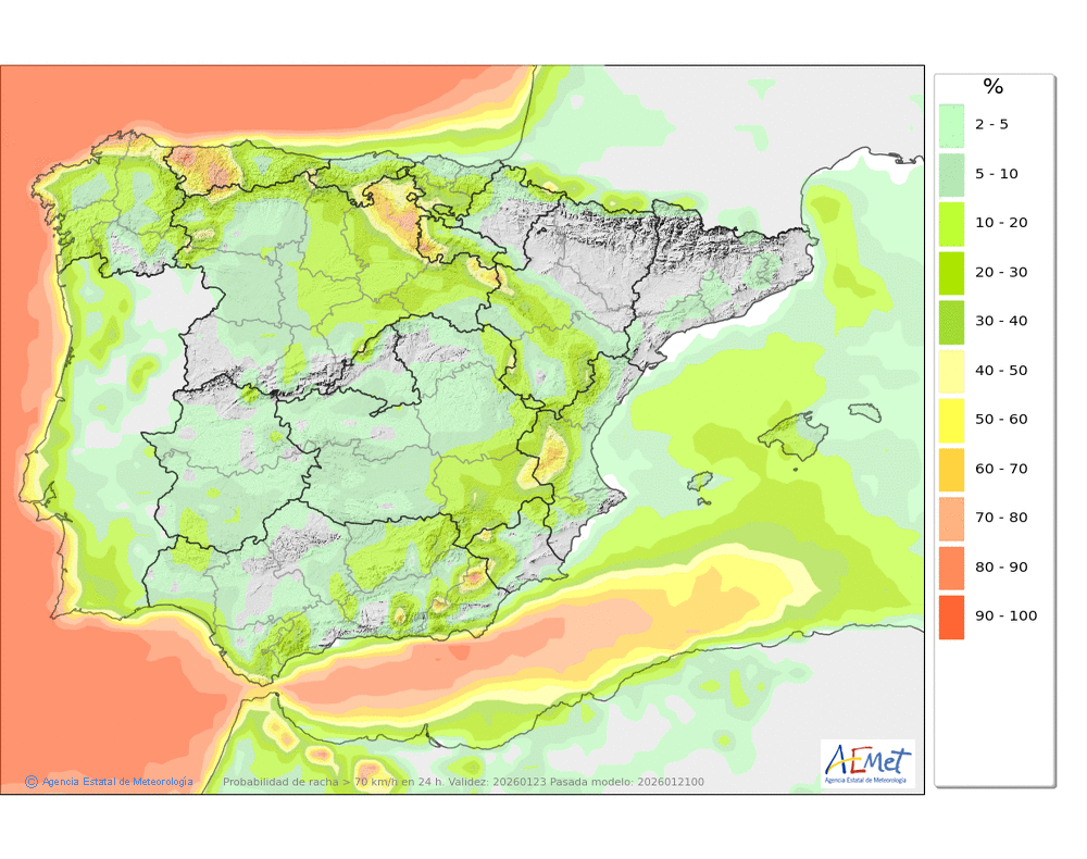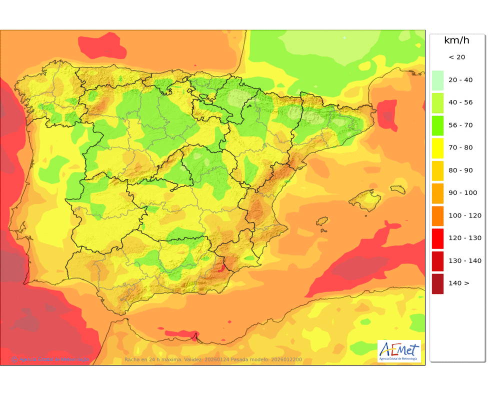 En cotas altas soplará fuerte del suroeste, con rachas muy