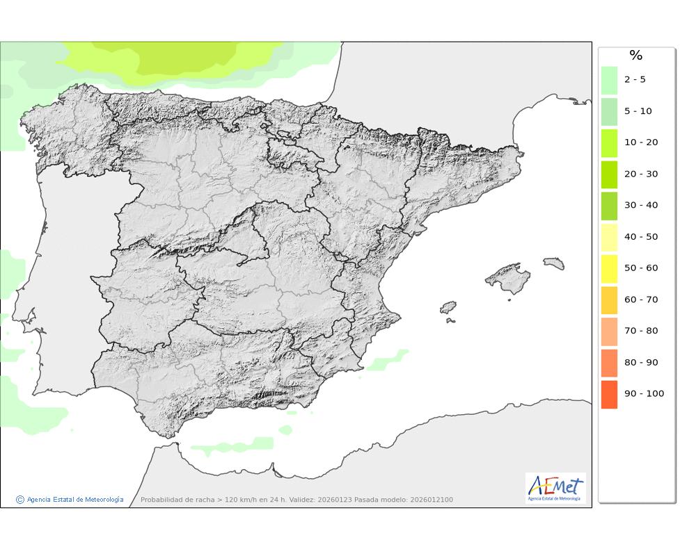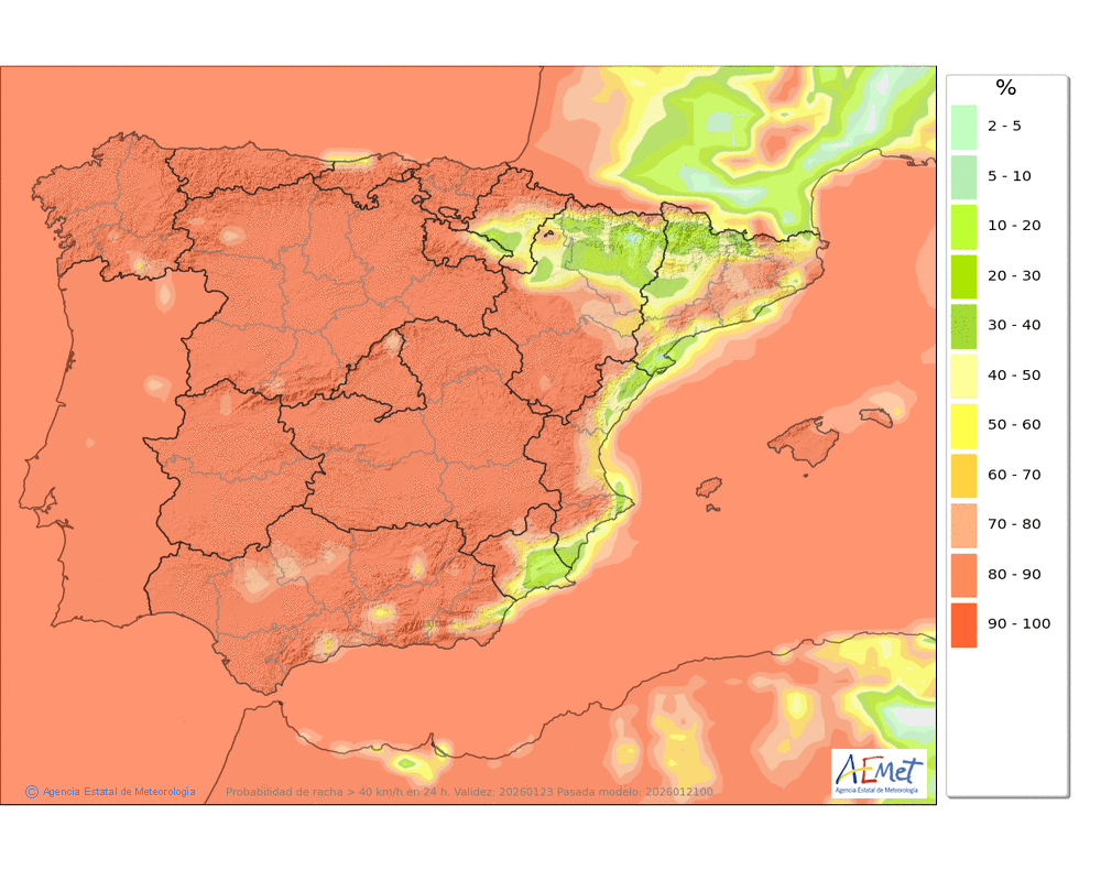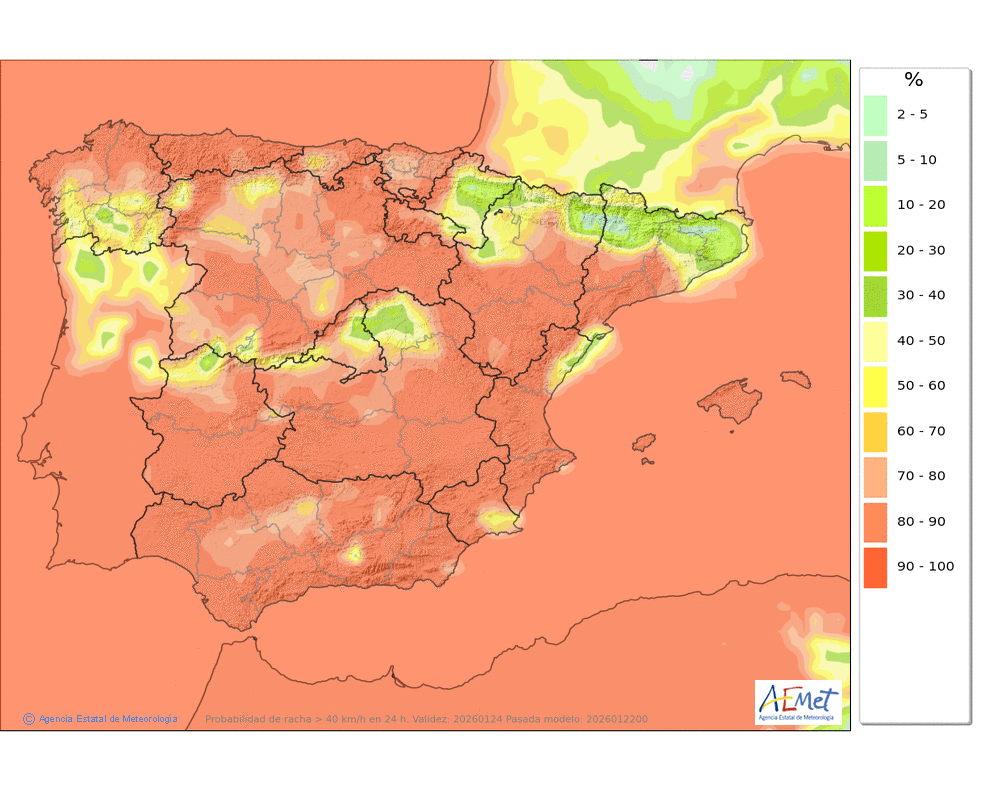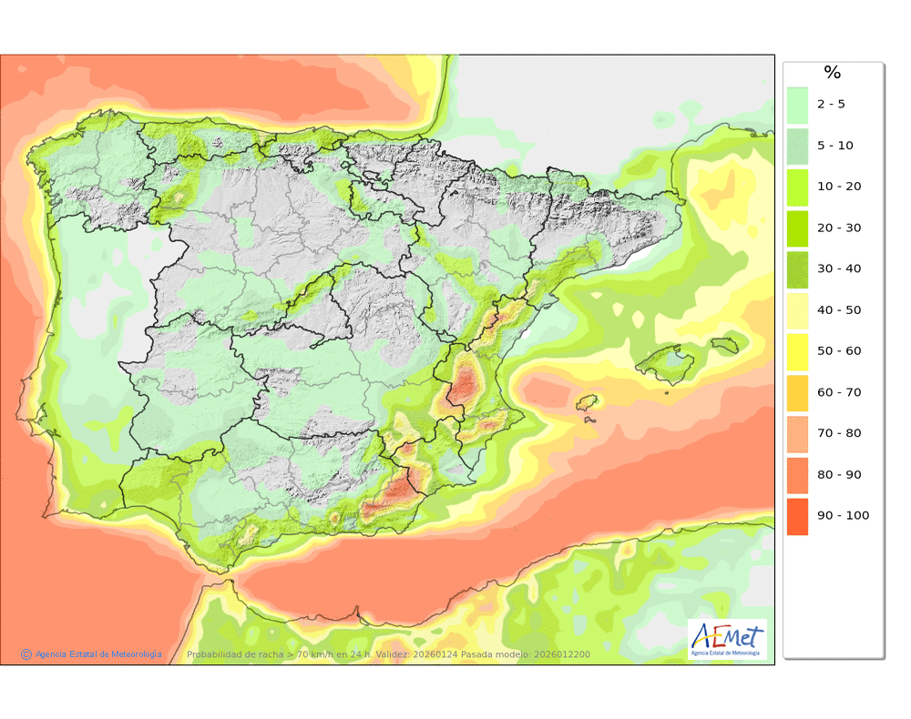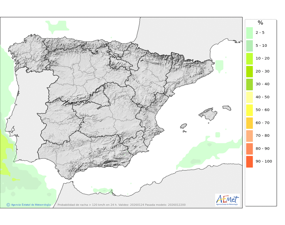 En cotas altas soplará fuerte del suroeste, con rachas muy