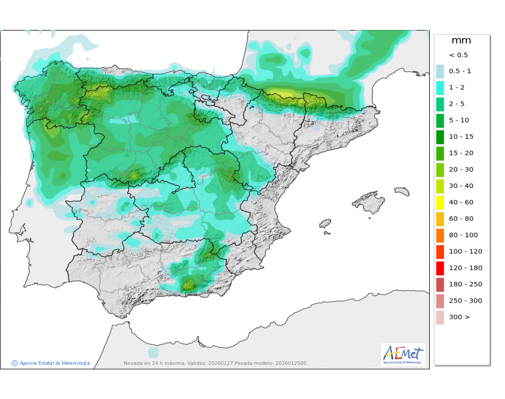 Las nevadas vendrán acompañadas de un flujo intenso de