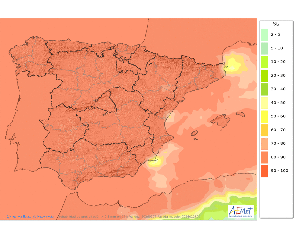 Predominio de cielos muy nubosos o cubiertos, aunque con
