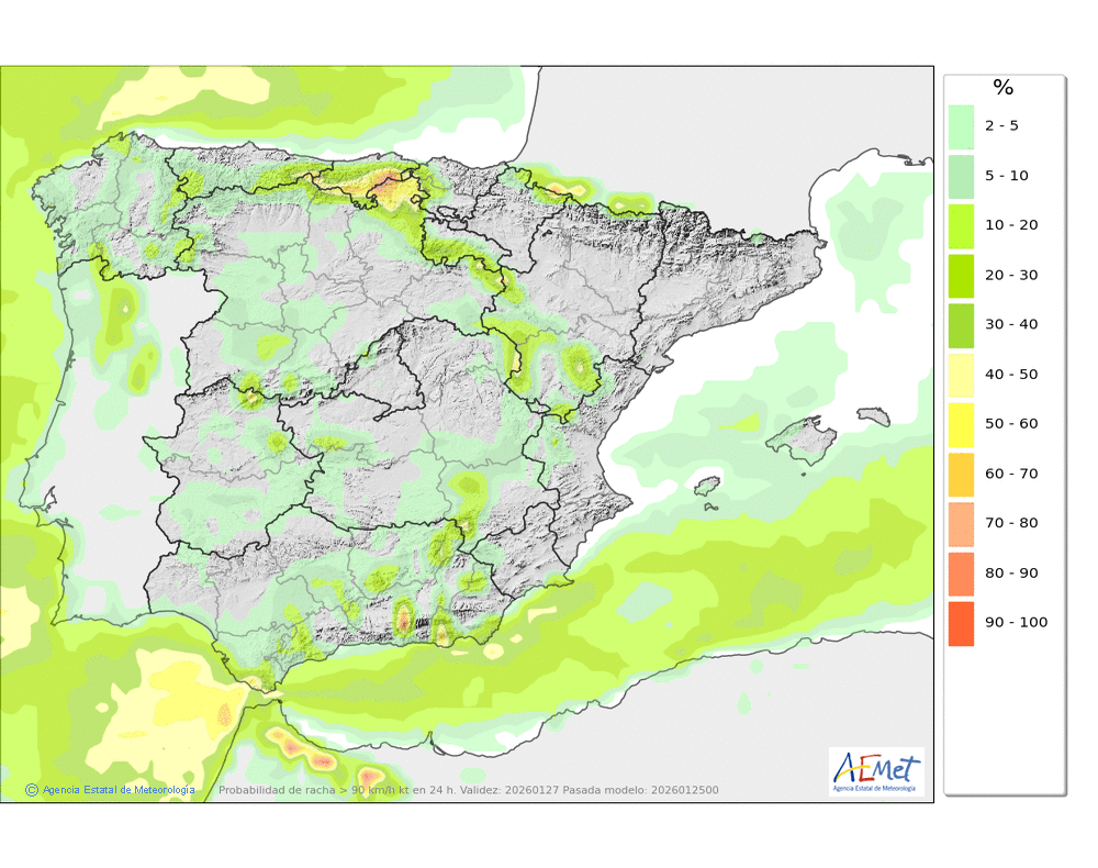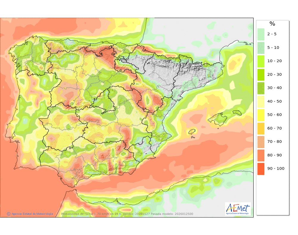 moderados o fuertes del oeste y noroeste, con rachas muy fuertes