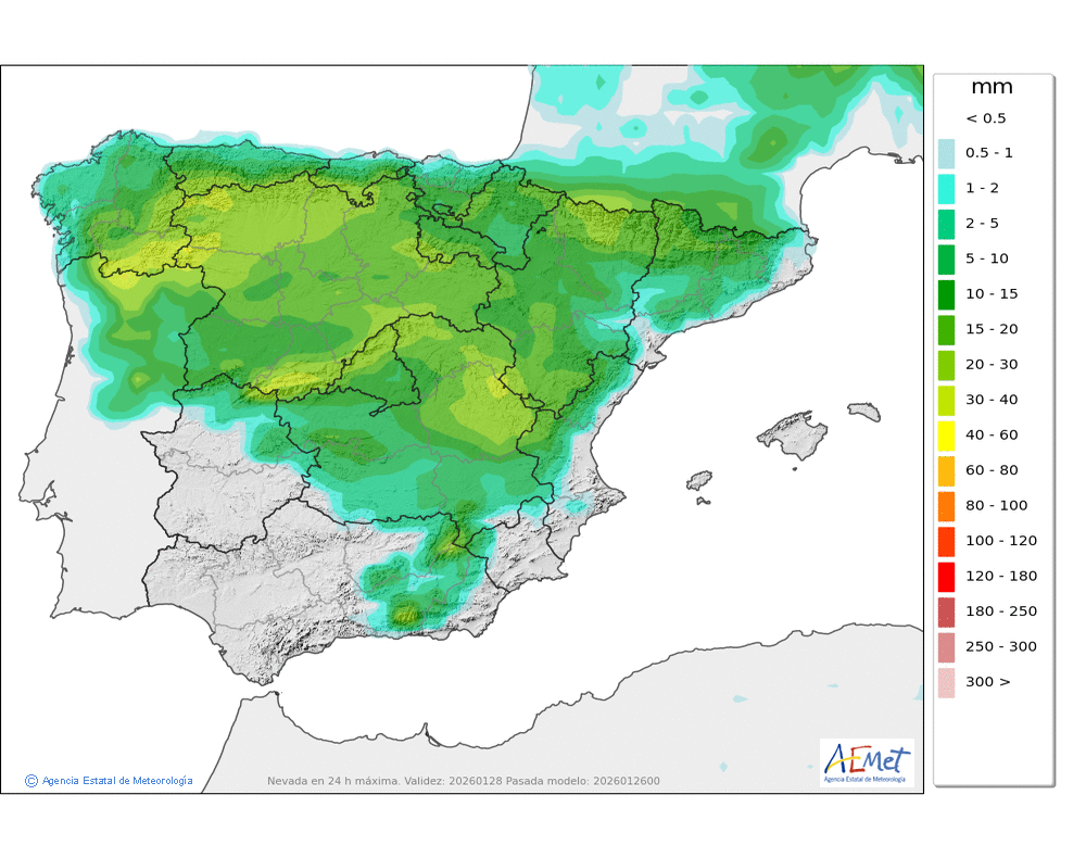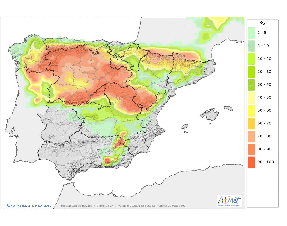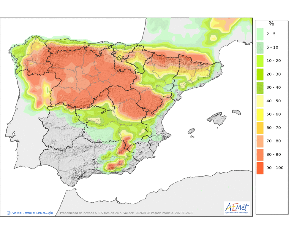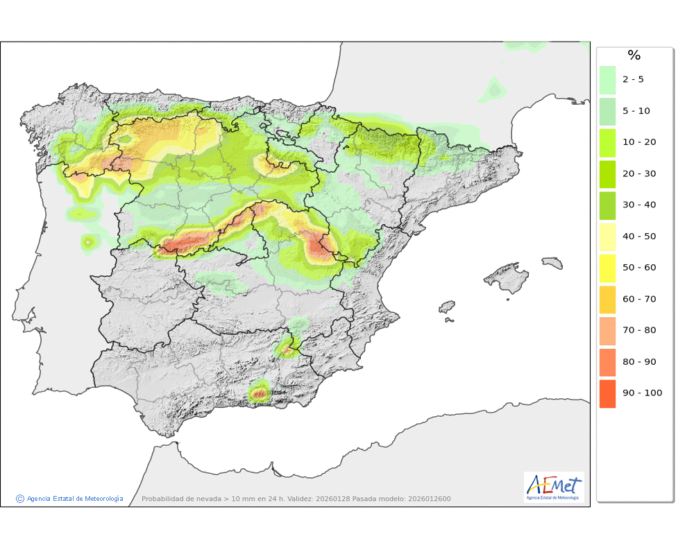 Las precipitaciones previstas en forma de nieve durante las