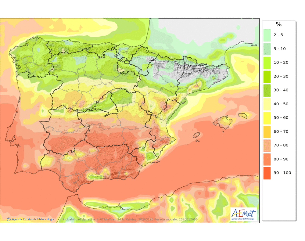 localmente fuertes en la alta montaña.