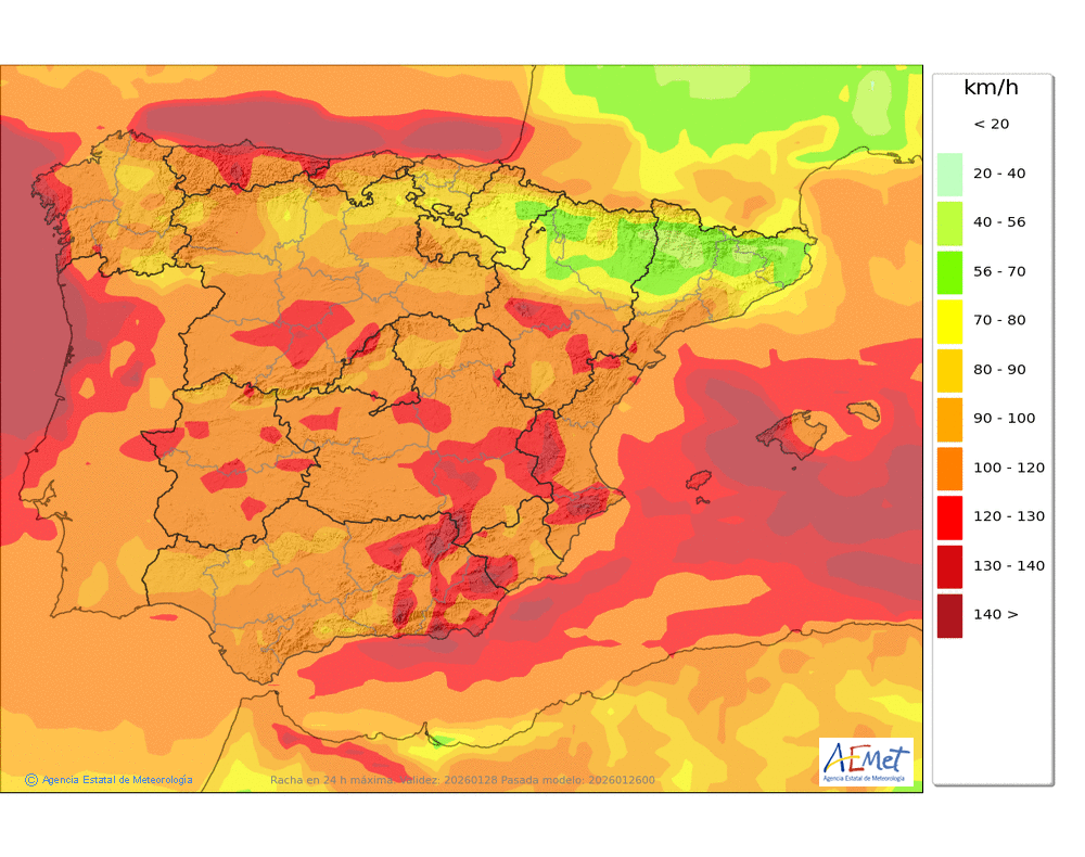 fuertes del noroeste, con rachas muy fuertes en cotas altas y