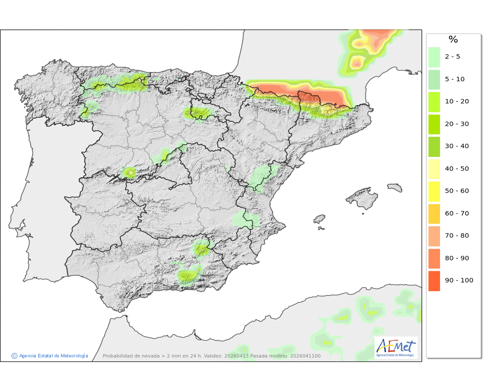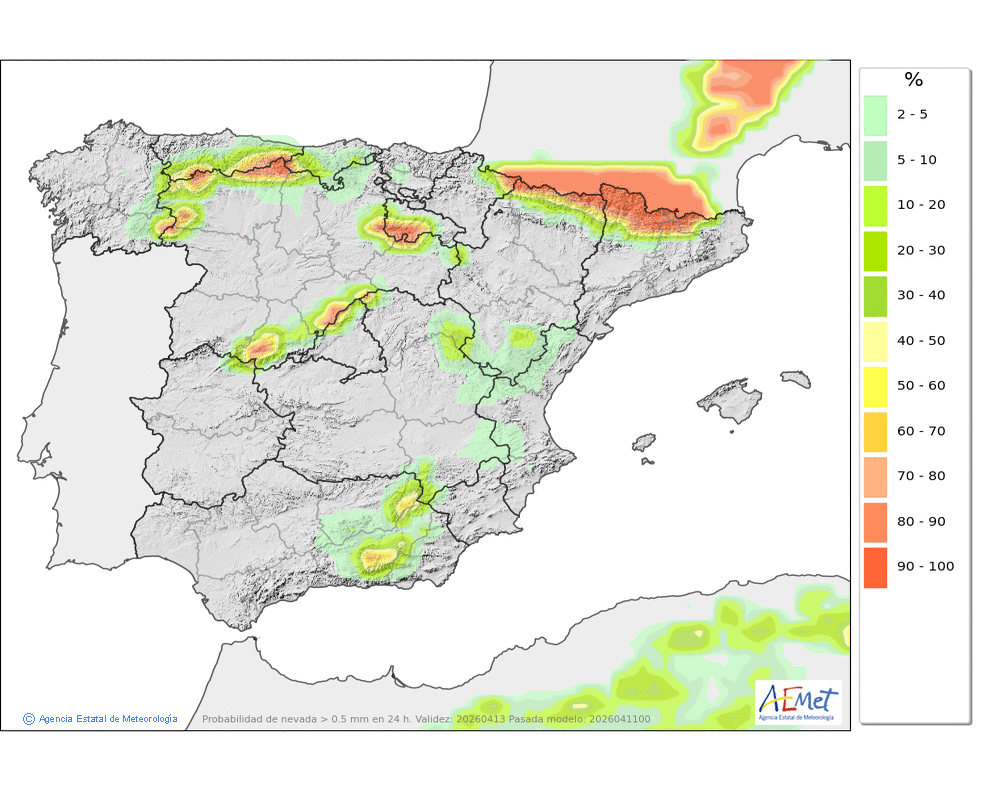 localmente moderadas a partir de la tarde en el Pirineo navarro