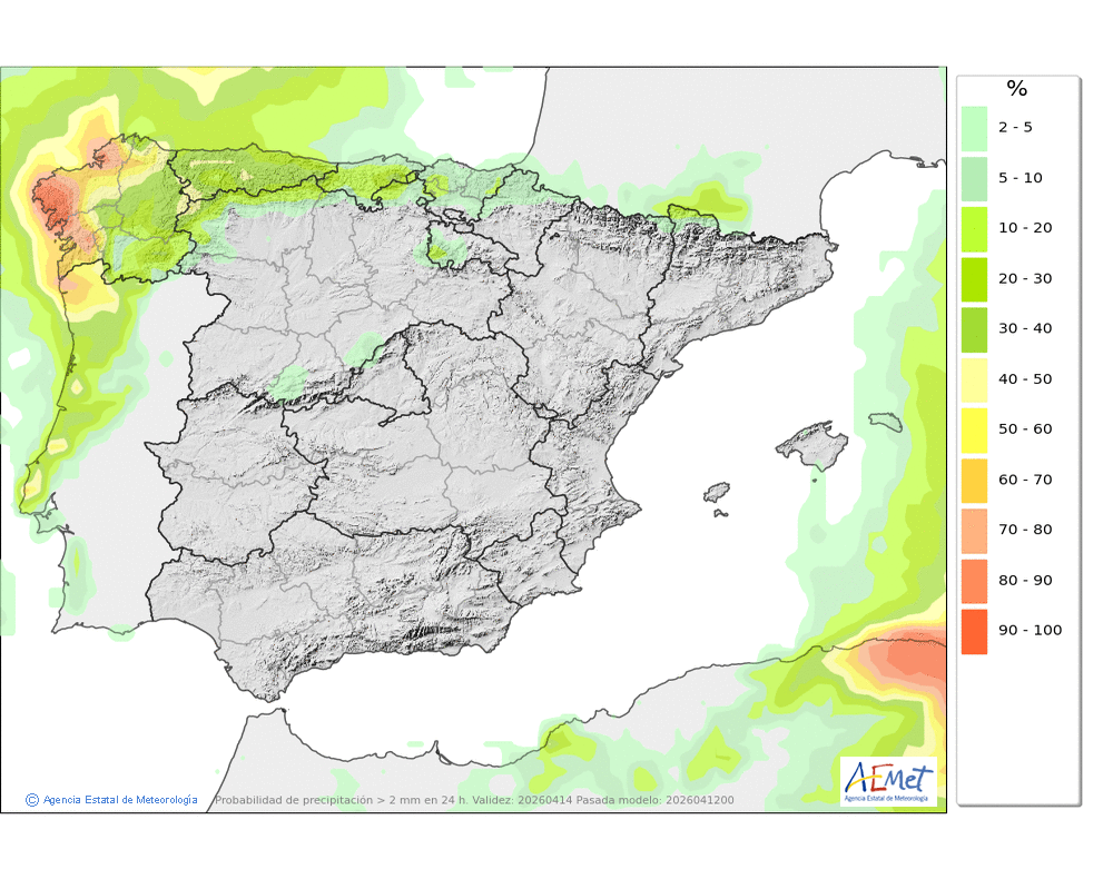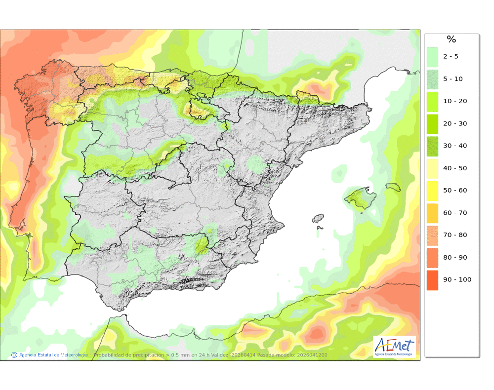 esperan precipitaciones débiles o moderadas, que podrían ser