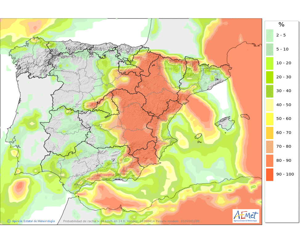 Viento en la atmósfera libre a 3000 m: S 30 km/h