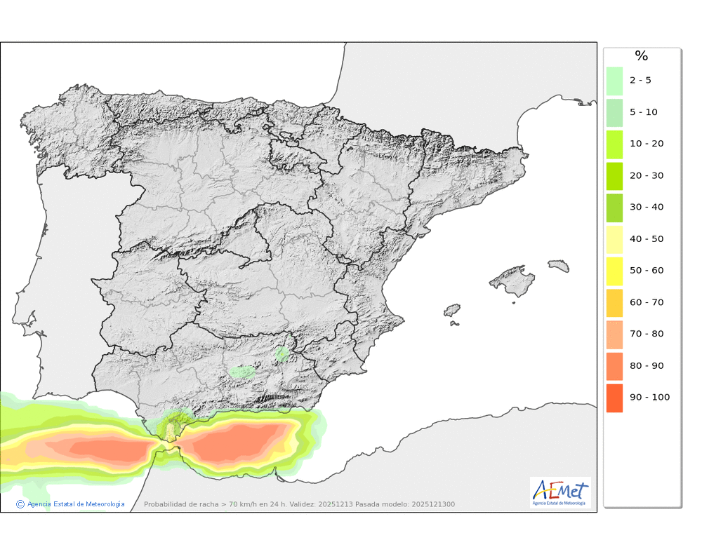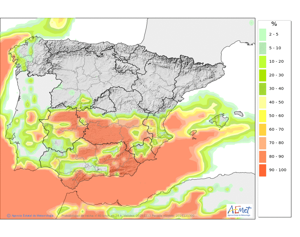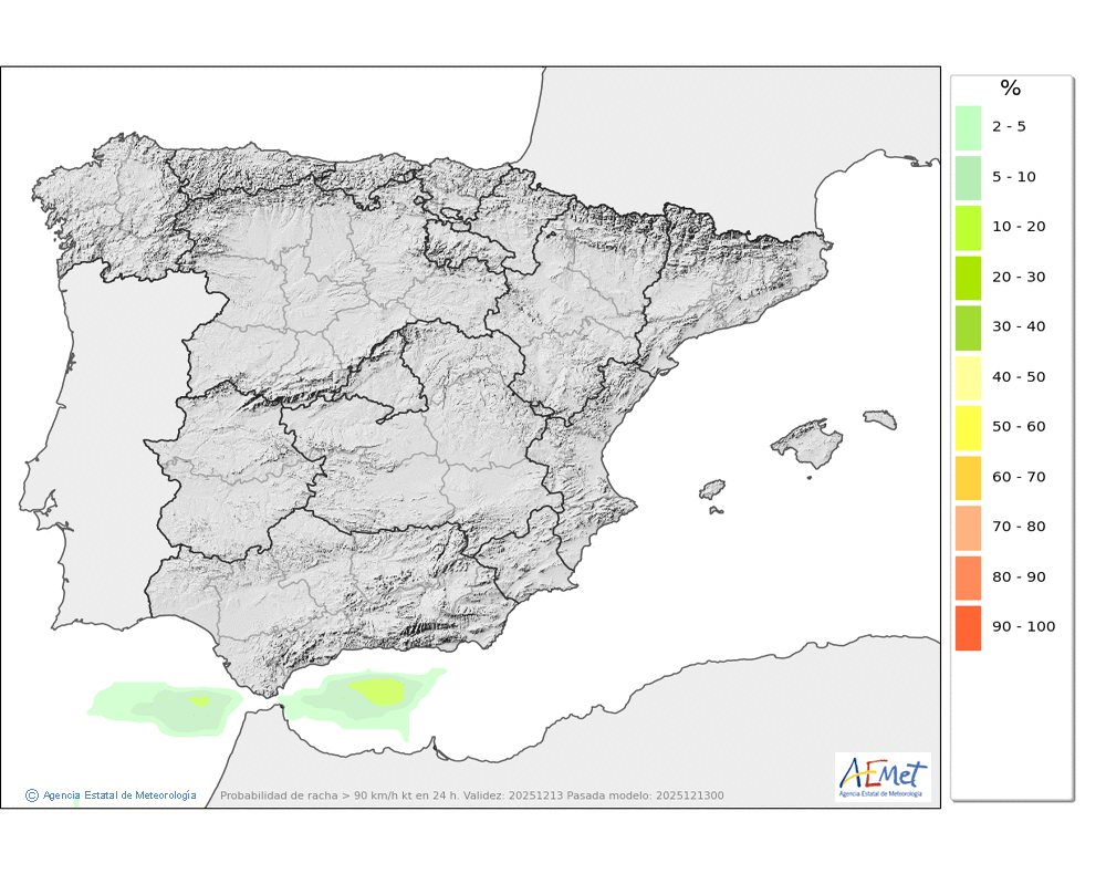 Débiles o localmente moderadas, a primeras horas más restringidas al área oriental donde podrán llegar a ser localmente fuertes, aunque tenderán a generalizarse durante la segunda mitad del día. Cota de nieve en torno a 1900-2000 metros.