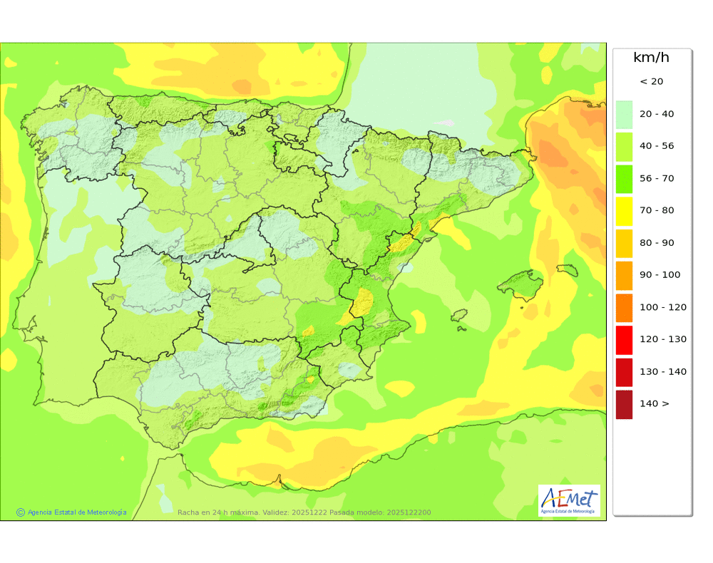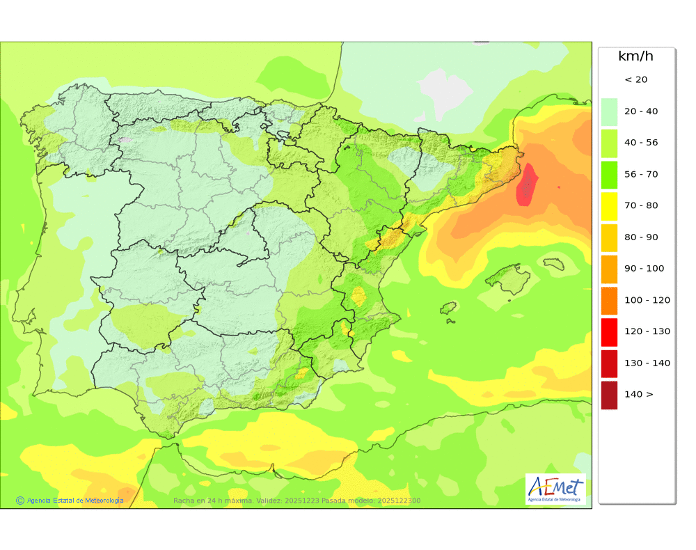 Moderado del noroeste, fuerte en cotas altas, tendiendo disminuir de intensidad al final del día.