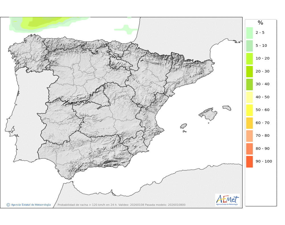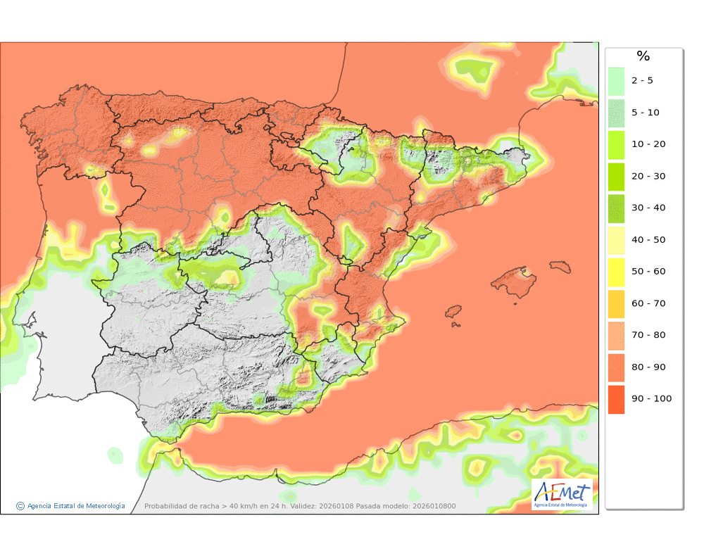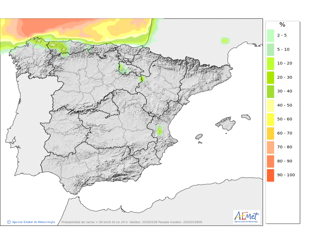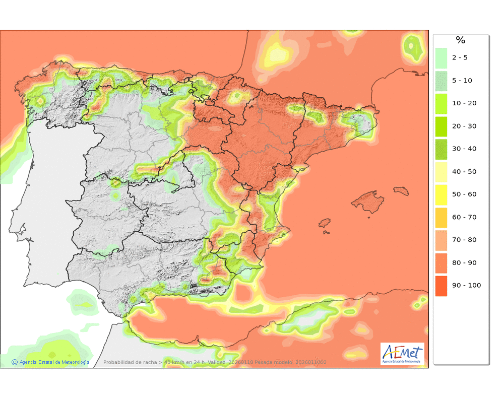 Soplarán vientos moderados o fuertes del noroeste, con rachas muy fuertes en crestas, collados y otras zonas expuestas, disminuyendo de intensidad por la tarde.
