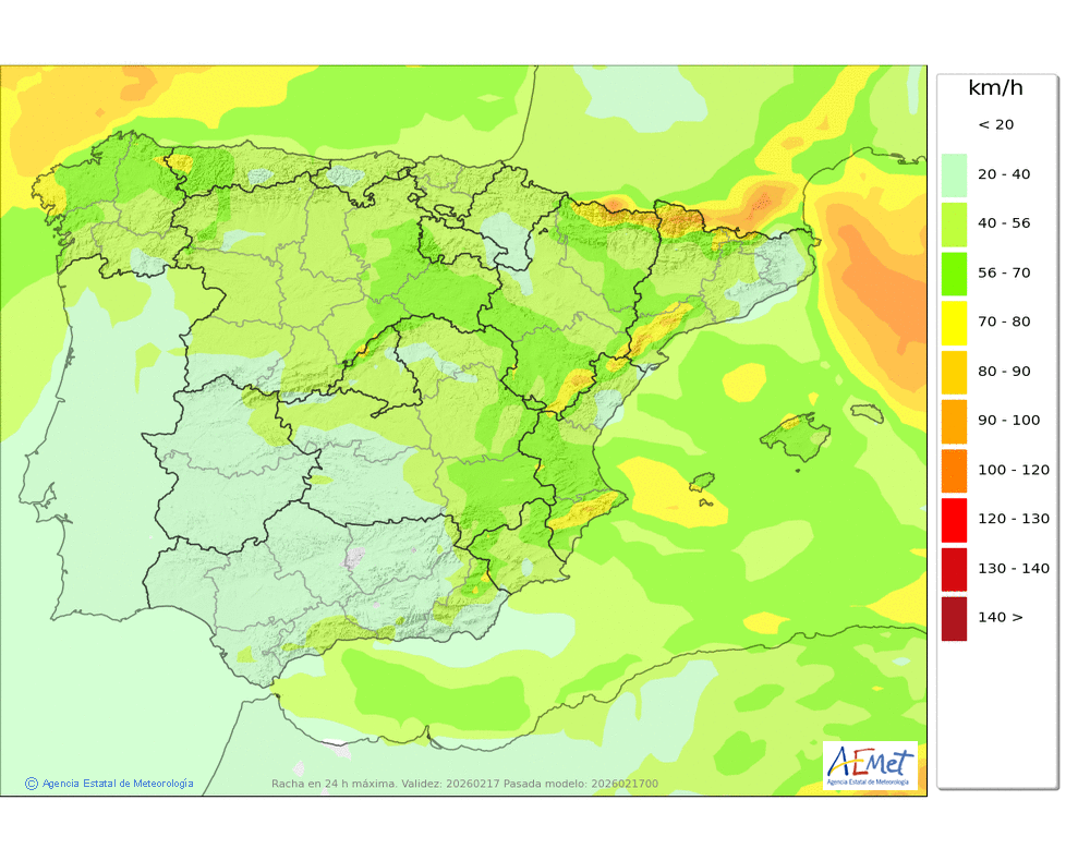 De componente oeste, inicialmente moderado, tendiendo a fuerte con probables rachas muy fuertes en cotas altas y zonas expuestas.