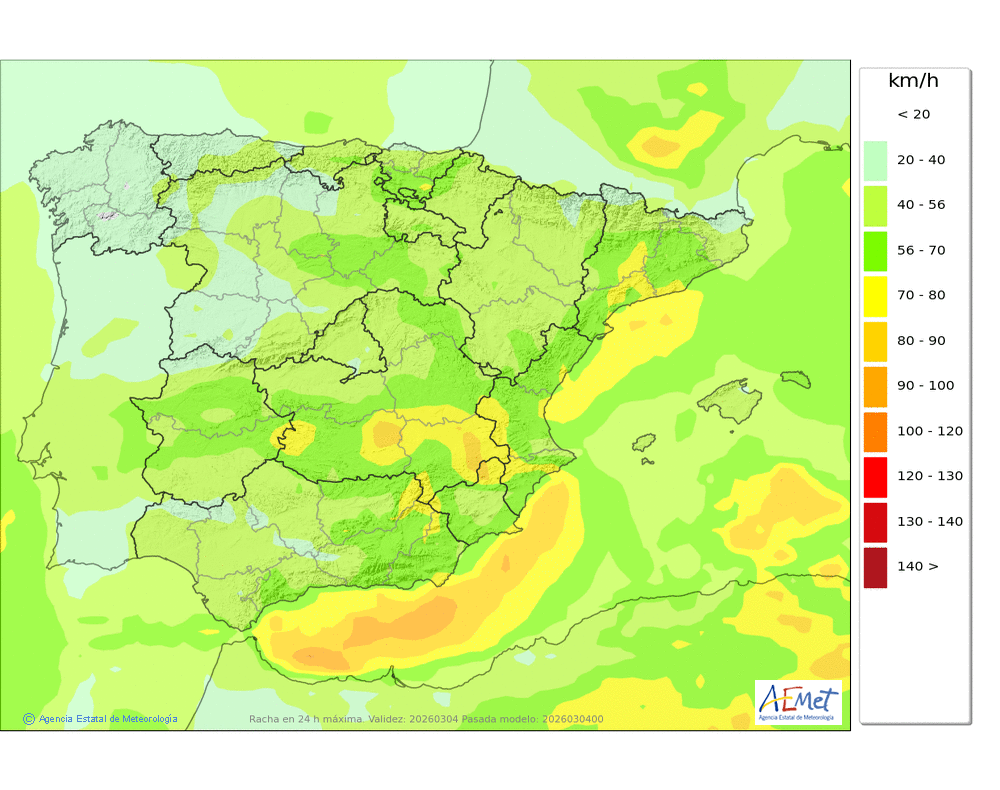 Moderado o fuerte de componente este, más intenso en cotas altas donde son probables las rachas muy fuertes, amainando al final del día.