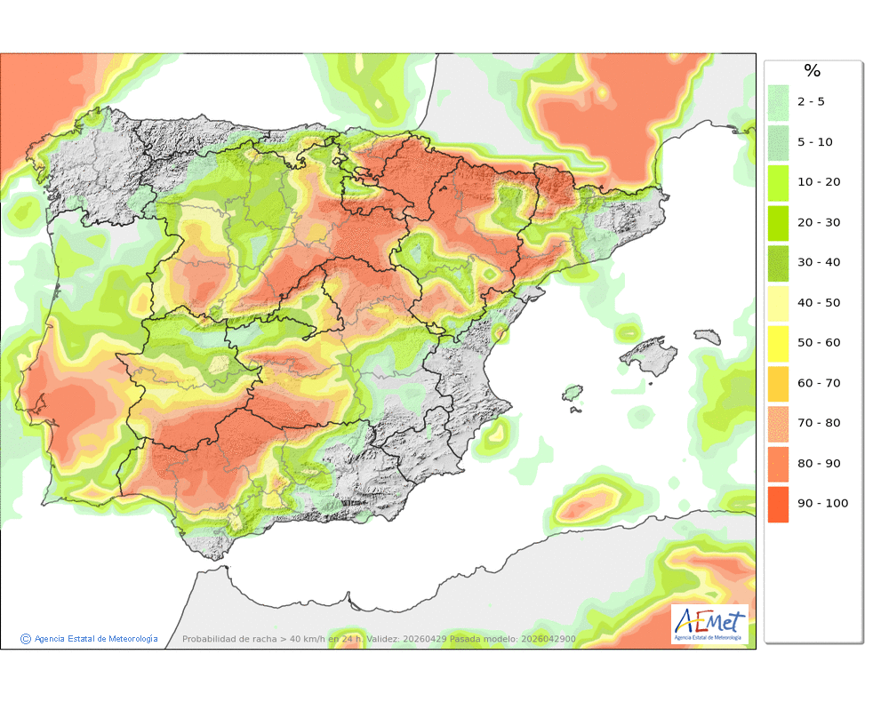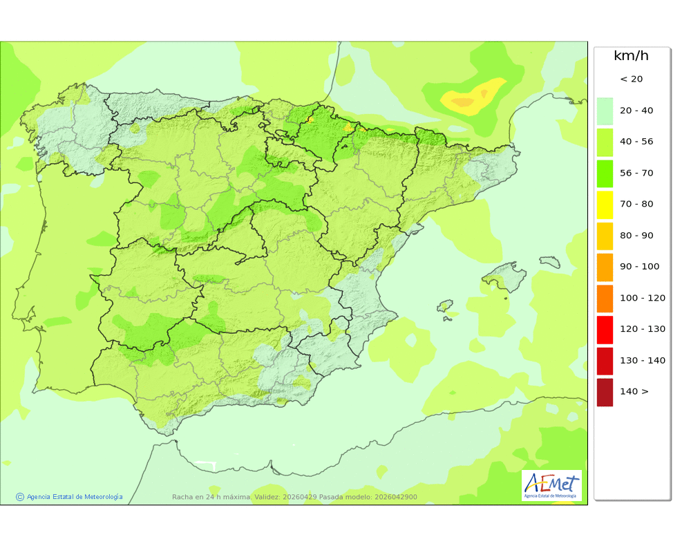 Flojo o moderado del oeste y suroeste, más intenso en cotas altas. Durante los chubascos o tormentas podrá soplar fuerte, racheado y de dirección variable.