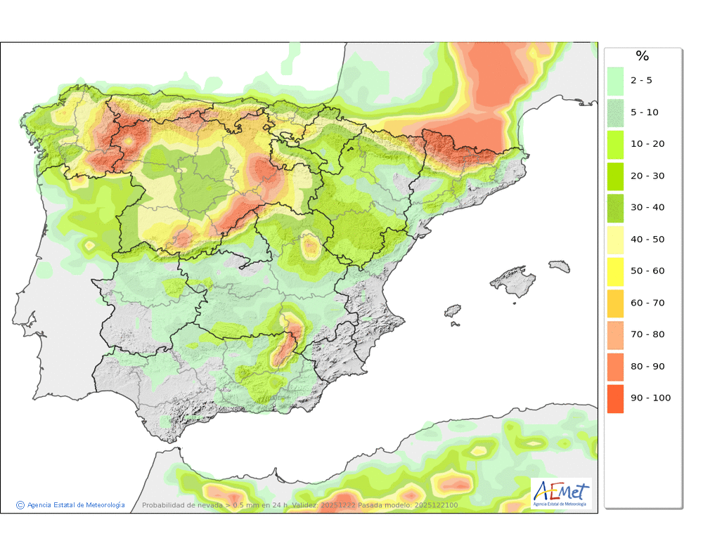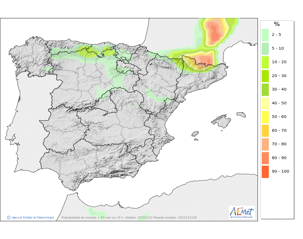 No se descartan débiles. Cota de nieve en torno a 700-900 metros.