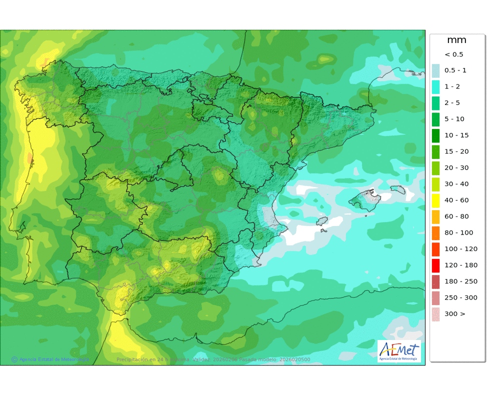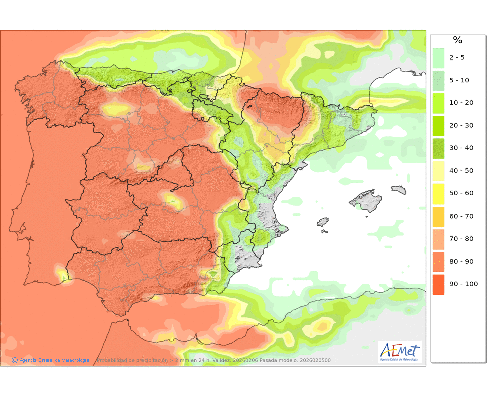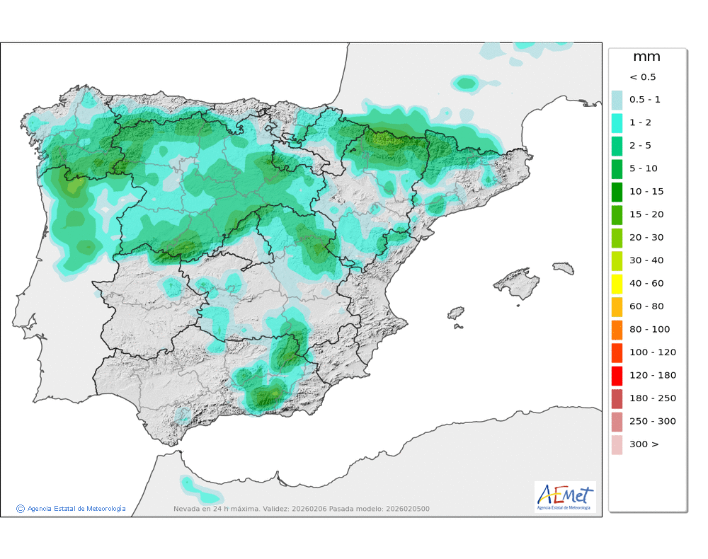 Generalmente moderadas, sin descartar que localmente puedan ser persistentes. Cota de nieve en descenso, de unos 1800-1700 a unos 1400-1300 metros.