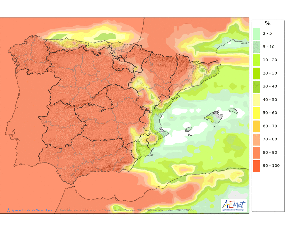 Predominio de cielos nubosos, a veces muy nubosos, con nubes bajas. Periodos de visibilidad localmente reducida.