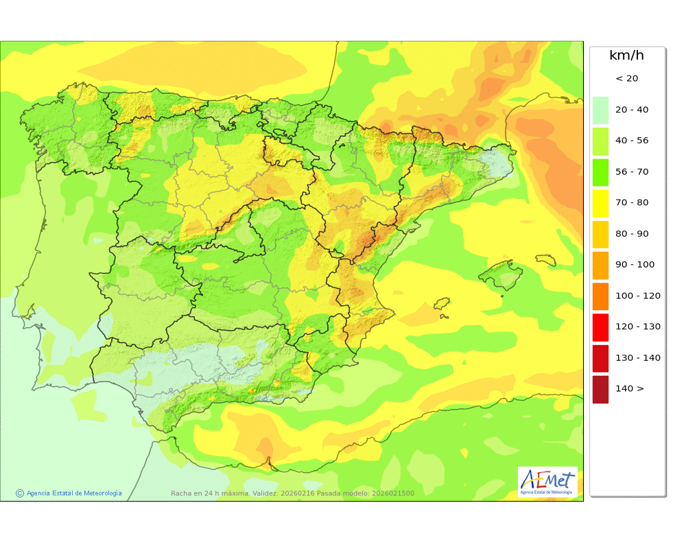 Moderado o fuerte del norte y noroeste, con rachas o intervalos muy fuertes en cotas altas.