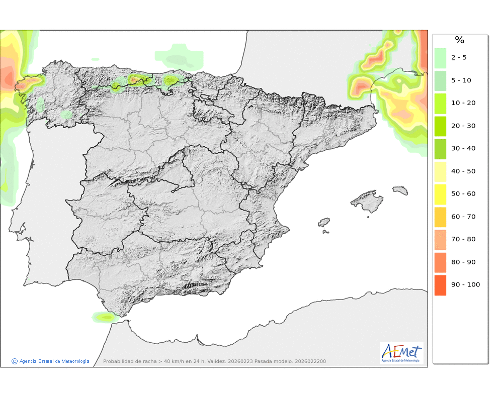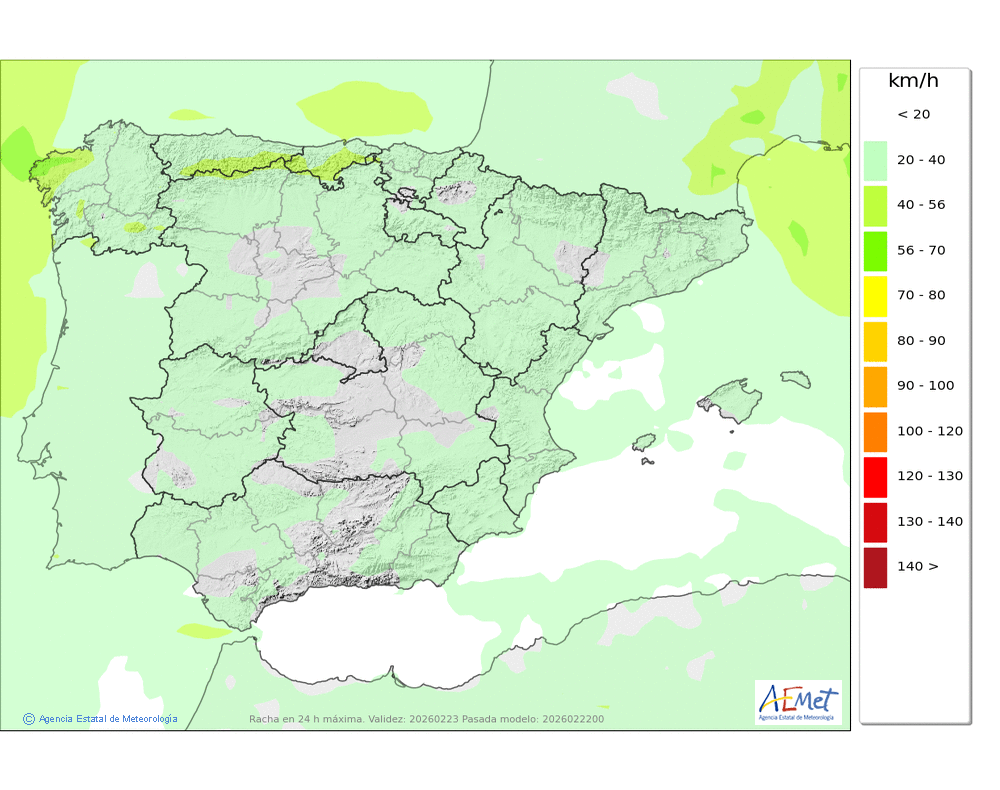VIENTO: flojo de componente norte y componente sur, con intervalos de intensidad moderada en cotas altas.