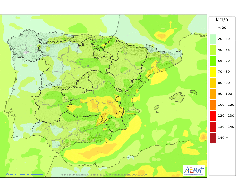 Moderado o fuerte de componente este, más intenso en cotas altas donde son probables las rachas muy fuertes, amainando al final del día.