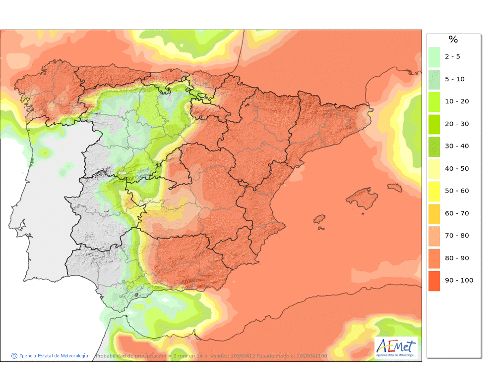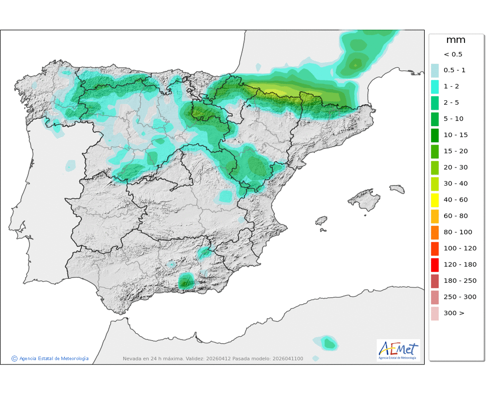 Débiles o moderadas, que podrían ser localmente fuertes e ir acompañadas de granizo, con tendencia a remitir a últimas horas. Cota de nieve en torno a 2500 metros, descendiendo hasta unos 1800 al final del día.