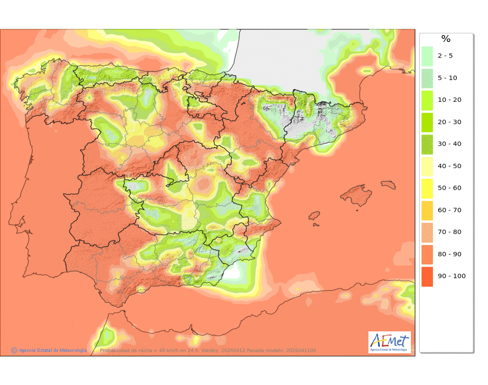 Flojo o moderado de componente norte, tendiendo a moderado o fuerte del noroeste, con probables rachas muy fuertes en cotas altas y zonas expuestas a últimas horas.