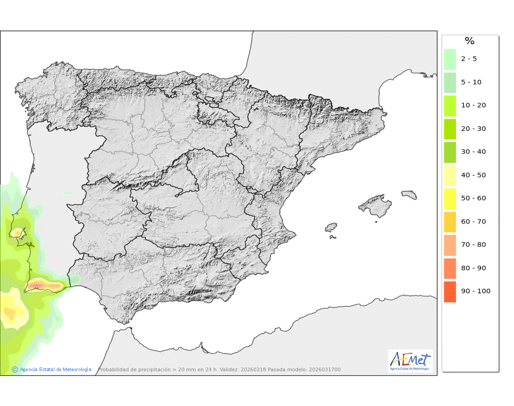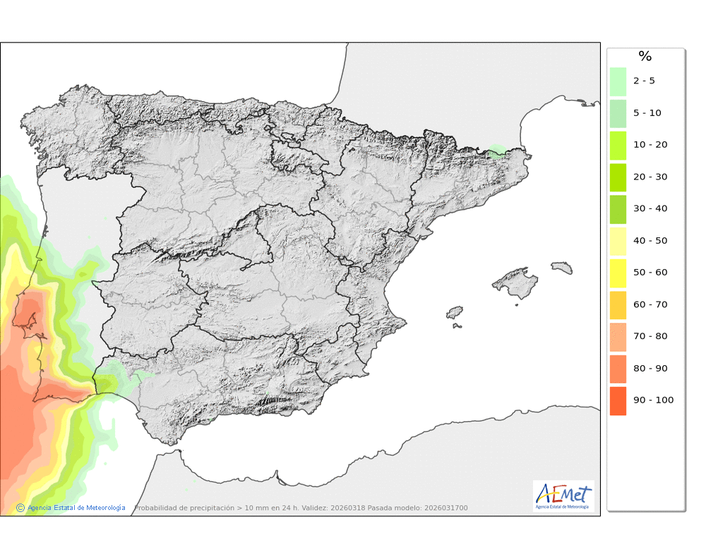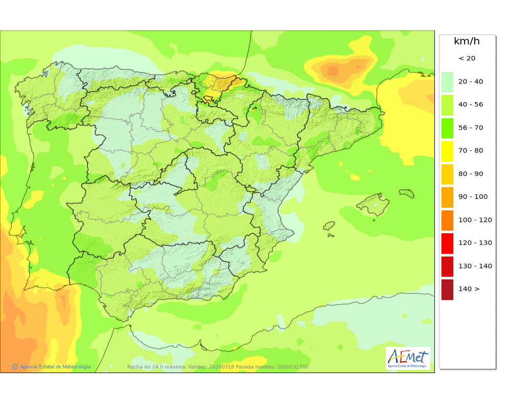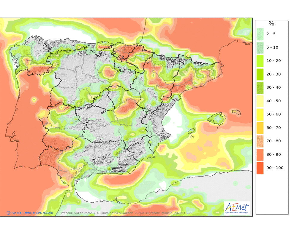 No se descartan algunas débiles en la segunda mitad del día, más probables e intensas al final, que podrán caer en forma de chubasco. Cota de nieve en torno a 2100-2200 metros.
