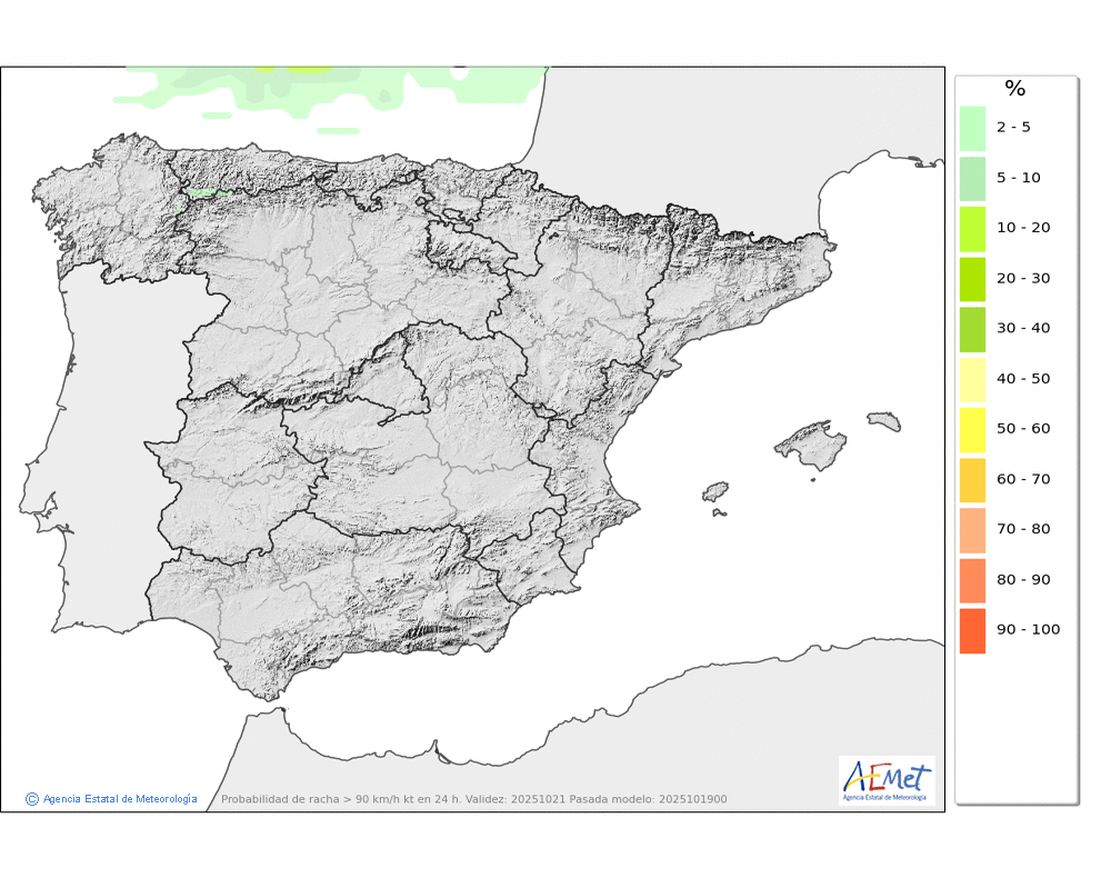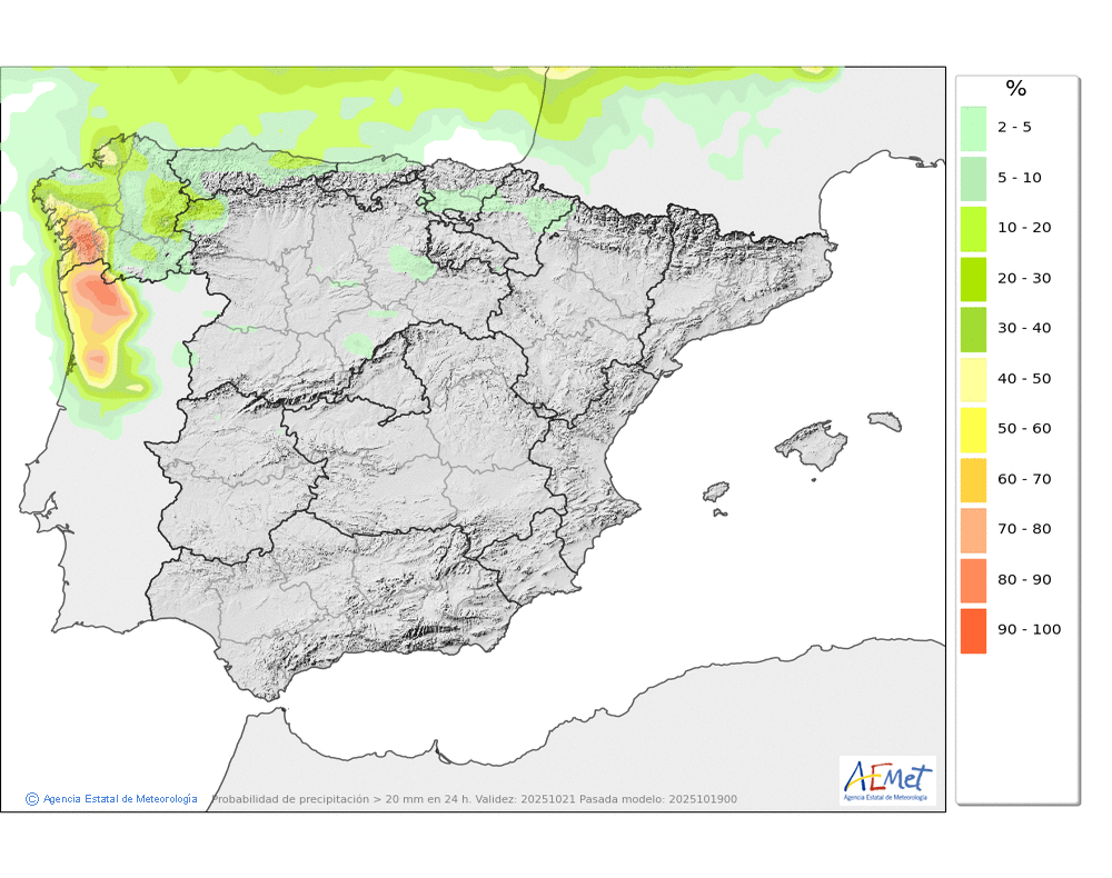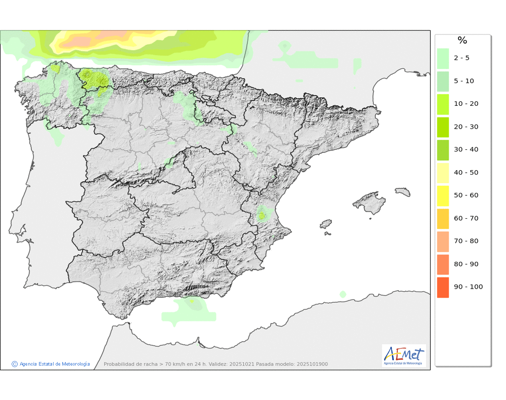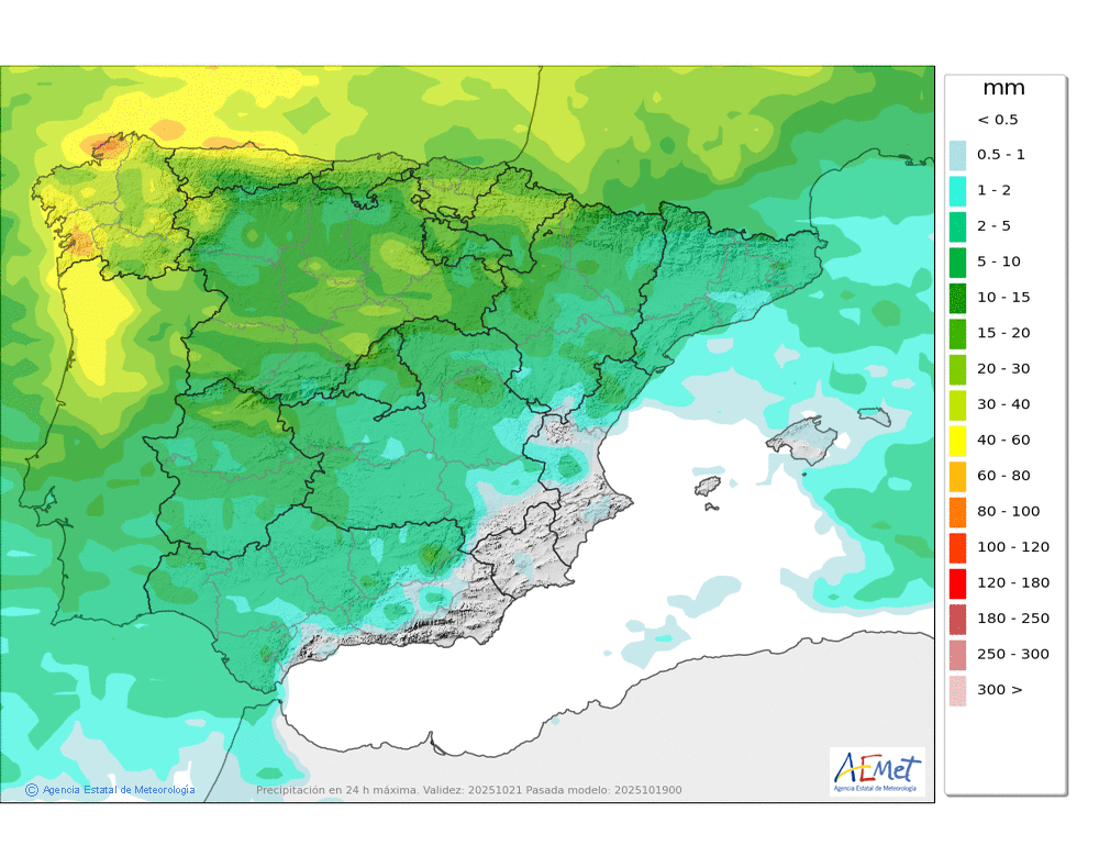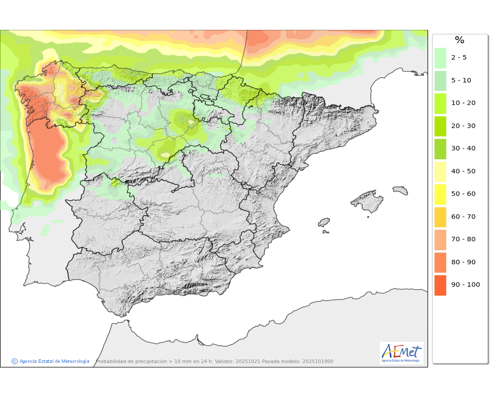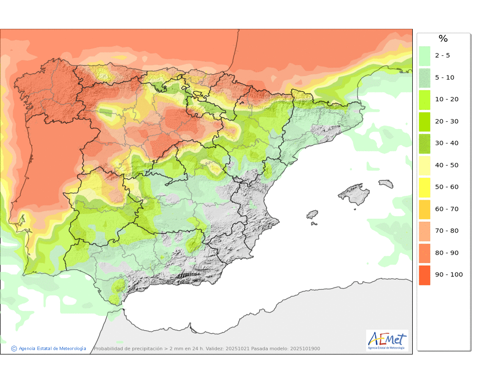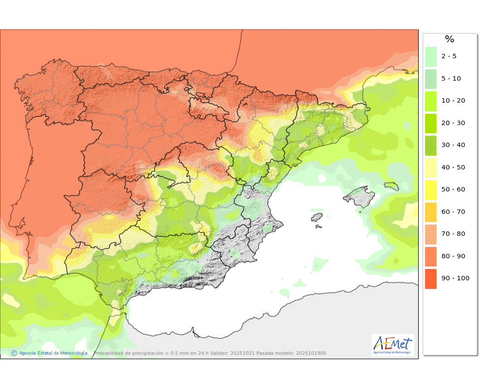 Probables precipitaciones débiles y ocasionales, que afectarán, principalmente, a la vertiente sur.