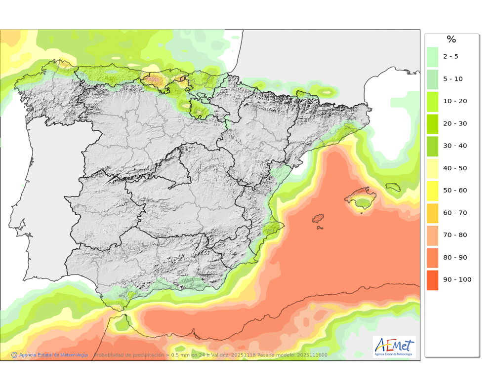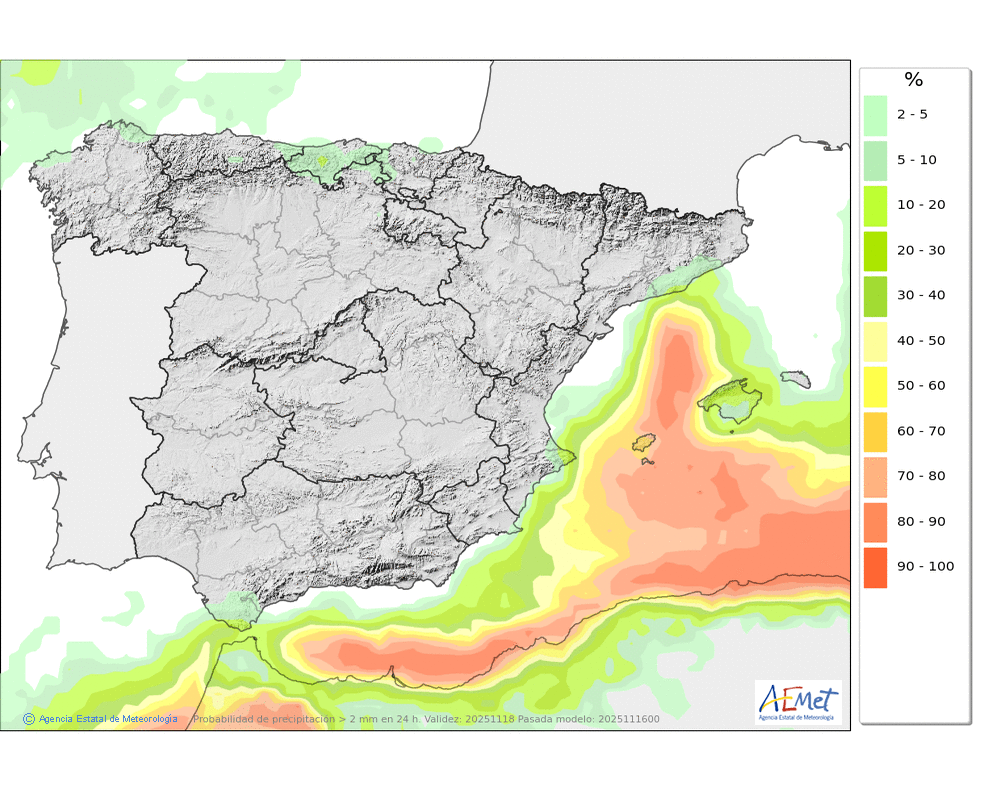 Poco nuboso o despejado, con nubosidad baja matinal que podrá reducir localmente la visibilidad.