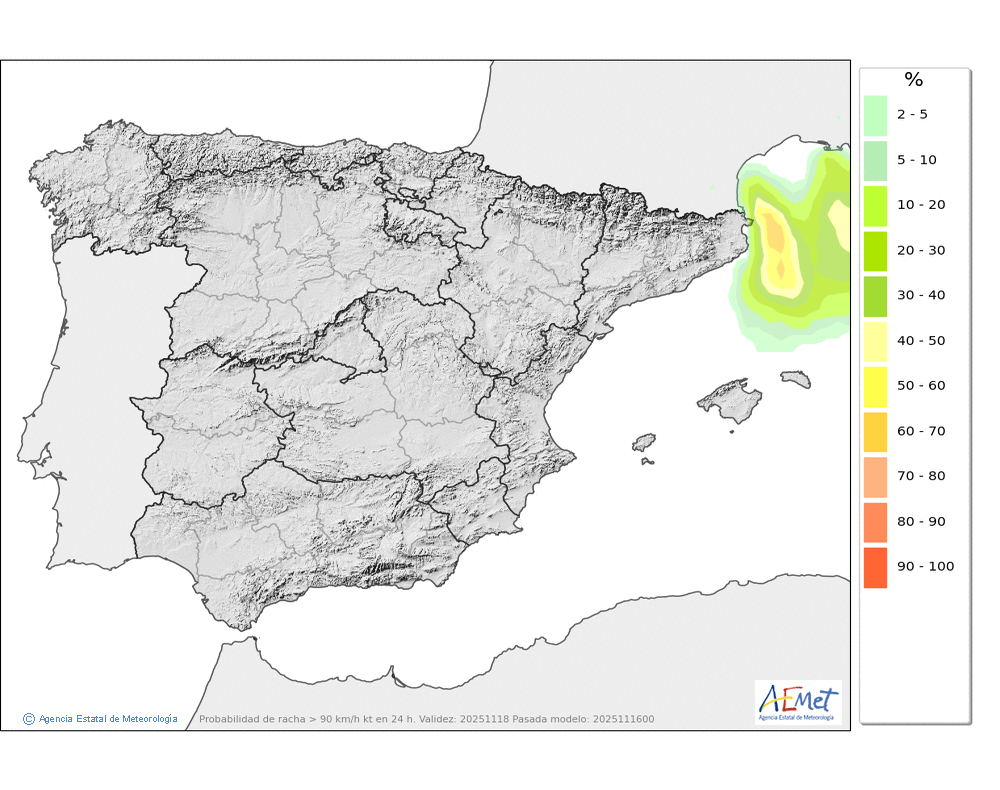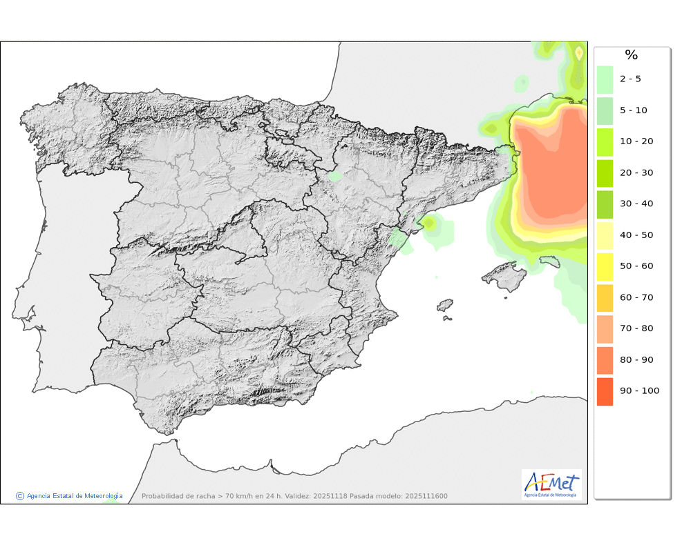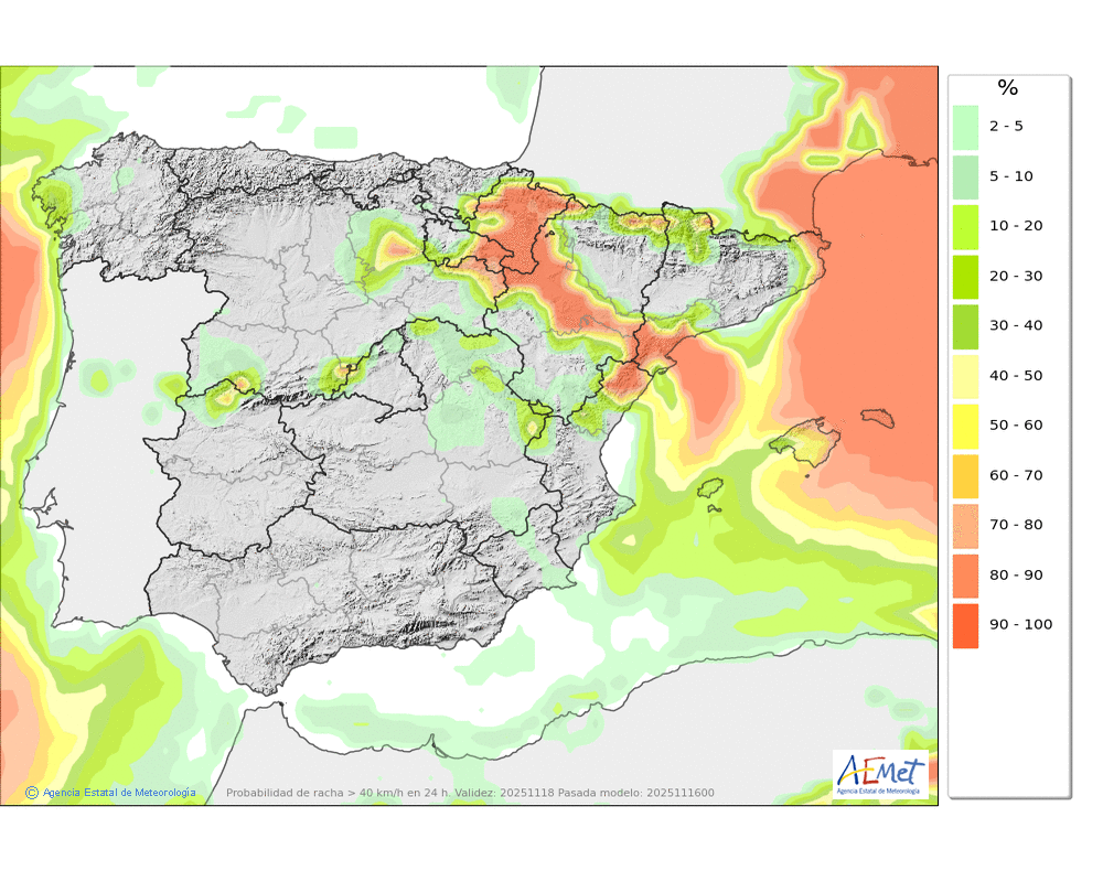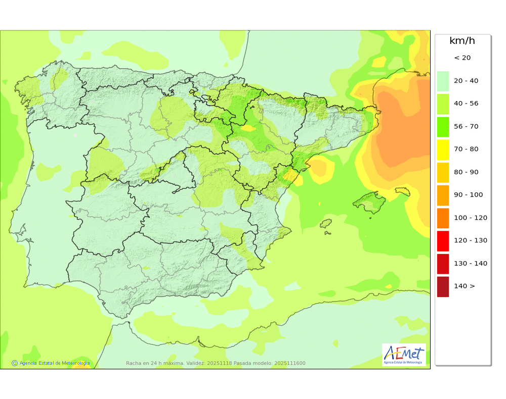 Flojo con predominio de la componente norte, con intervalos de intensidad moderada. Más intenso en cotas altas y zonas expuestas, donde no se descarta que pueda ir acompañado de alguna racha fuerte.