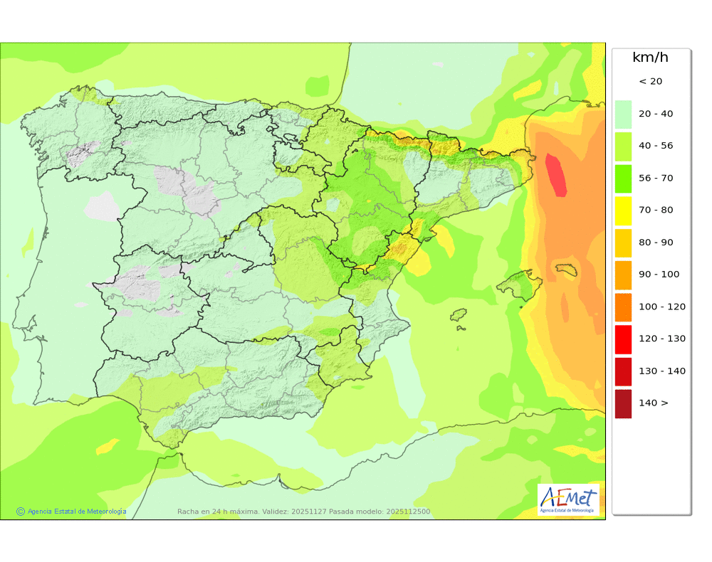 Flojo de componente norte. Más intenso en cotas altas y zonas expuestas, donde soplará moderado y perderá intensidad a lo largo del día.