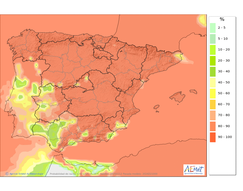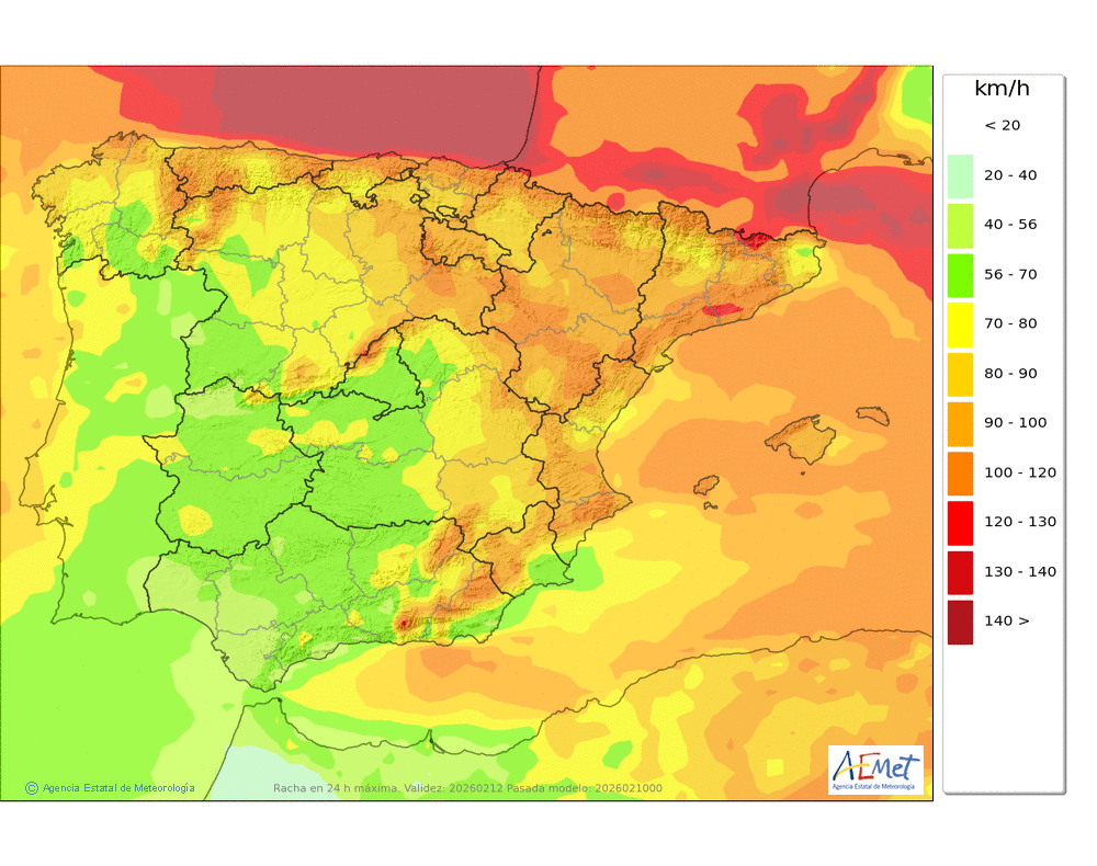 Moderado o fuerte de componente oeste, con probables rachas muy fuertes en cotas altas y zonas expuestas.