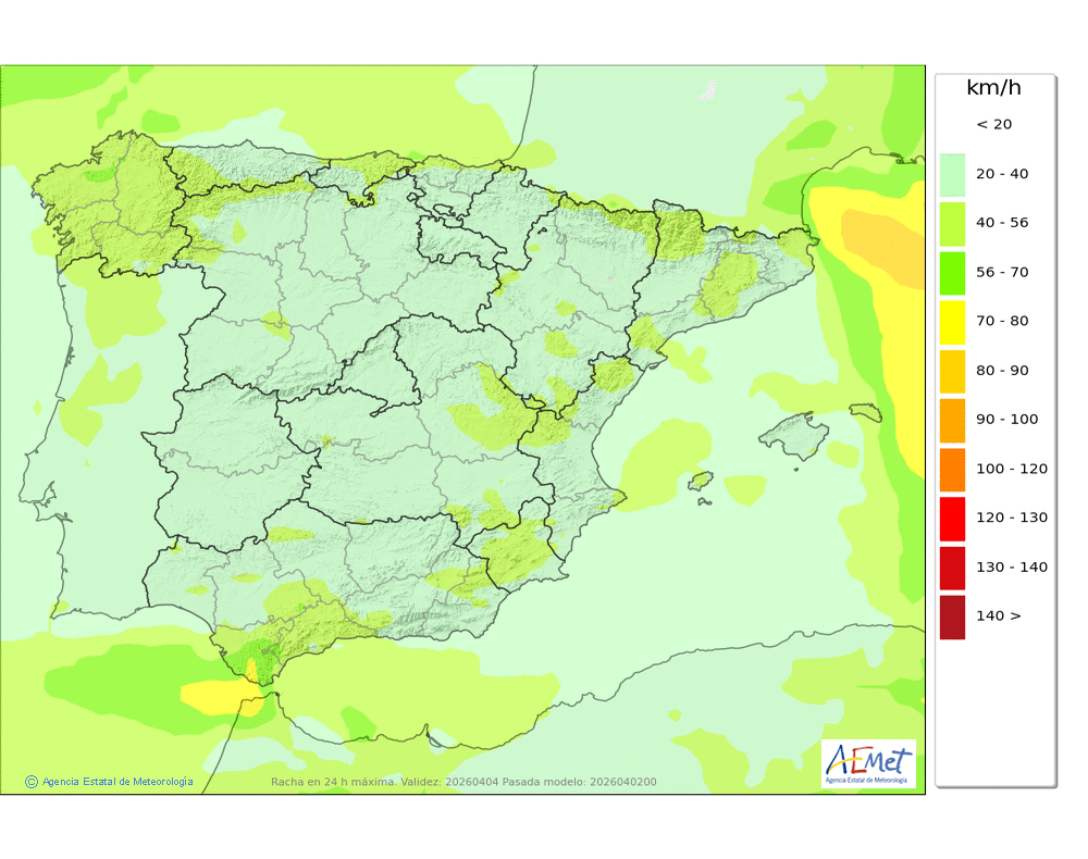Soplarán vientos inicialmente moderados de componente este, tendiendo por la tarde a flojos de dirección variable.